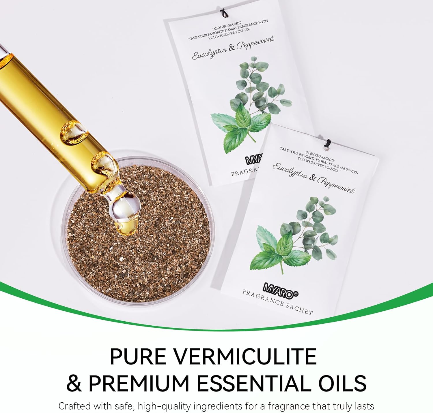- MYARO Eucalyptus Mint Sachet Bags: Includes 12 scented sachets (each bag size: 4.13 inch x 2.76 inch). Our natural fragrance will take you on a journey with the fresh scents sachet packets