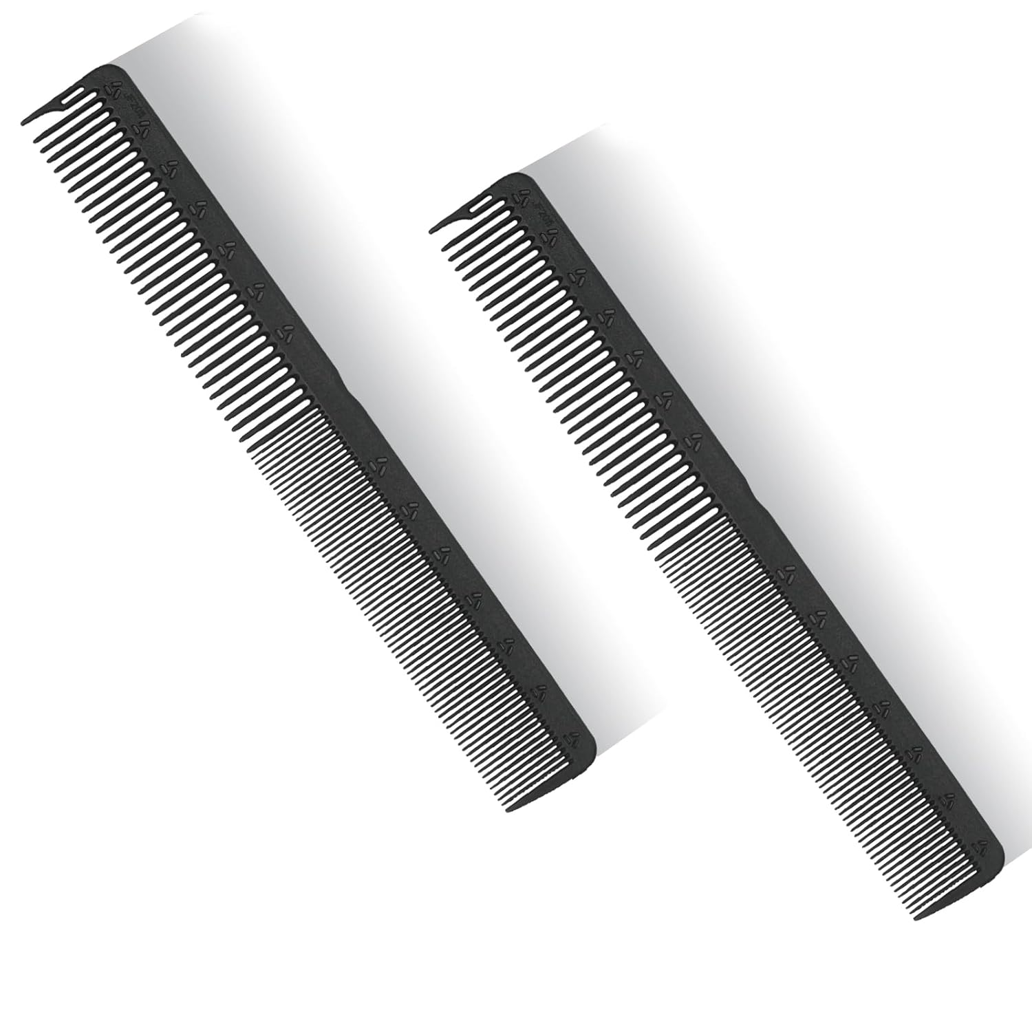 - Durable and Heat Resistant: This 2-pack carbon combs are designed to withstand heat up to 350 F, making them perfect for use with heated styling tools. Additionally, their durability is enhanced by their virtually unbreakable nature and lightweight design. These features make them an ideal choice as hair cutting combs.