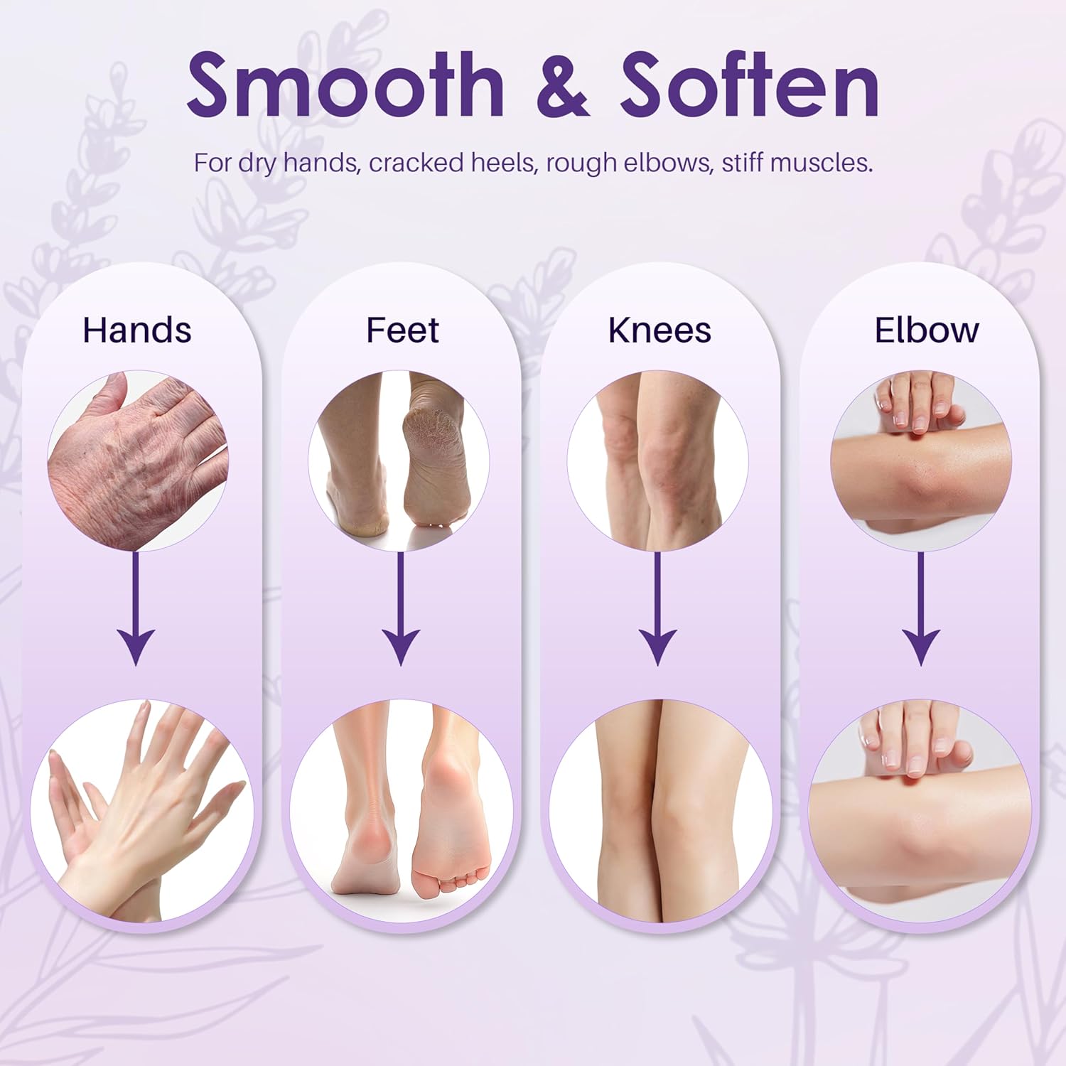 - Easy to Use with Any Paraffin Bath: These lavender paraffin wax refills are seamlessly compatible with most paraffin wax baths, especially when paired with the use of our Elegcov's paraffin wax machine, which melts evenly and quickly, ensuring a spa-like experience at home