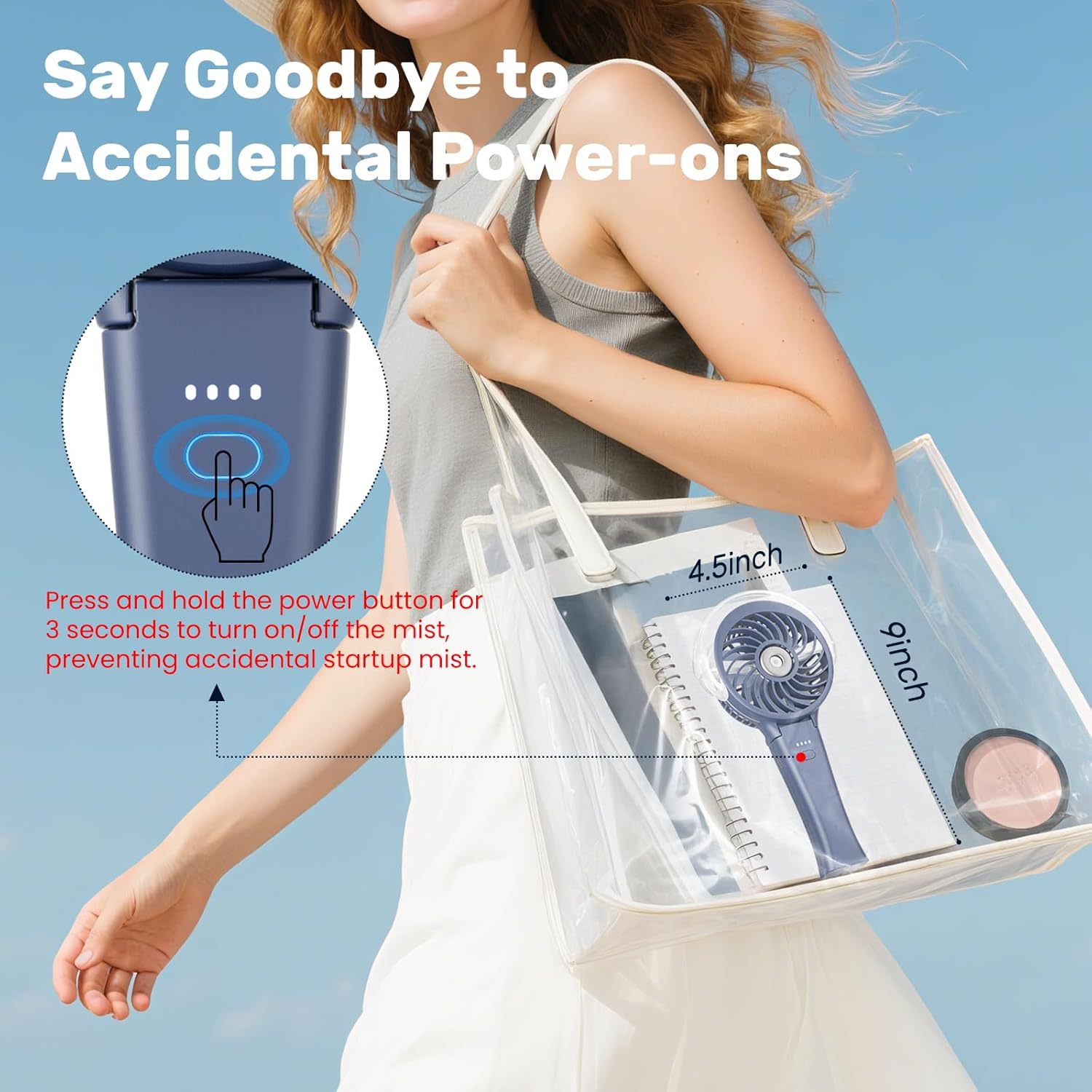 - How to turn on/off the mist: Press and hold the power button for 3 seconds to turn on/off the mist.