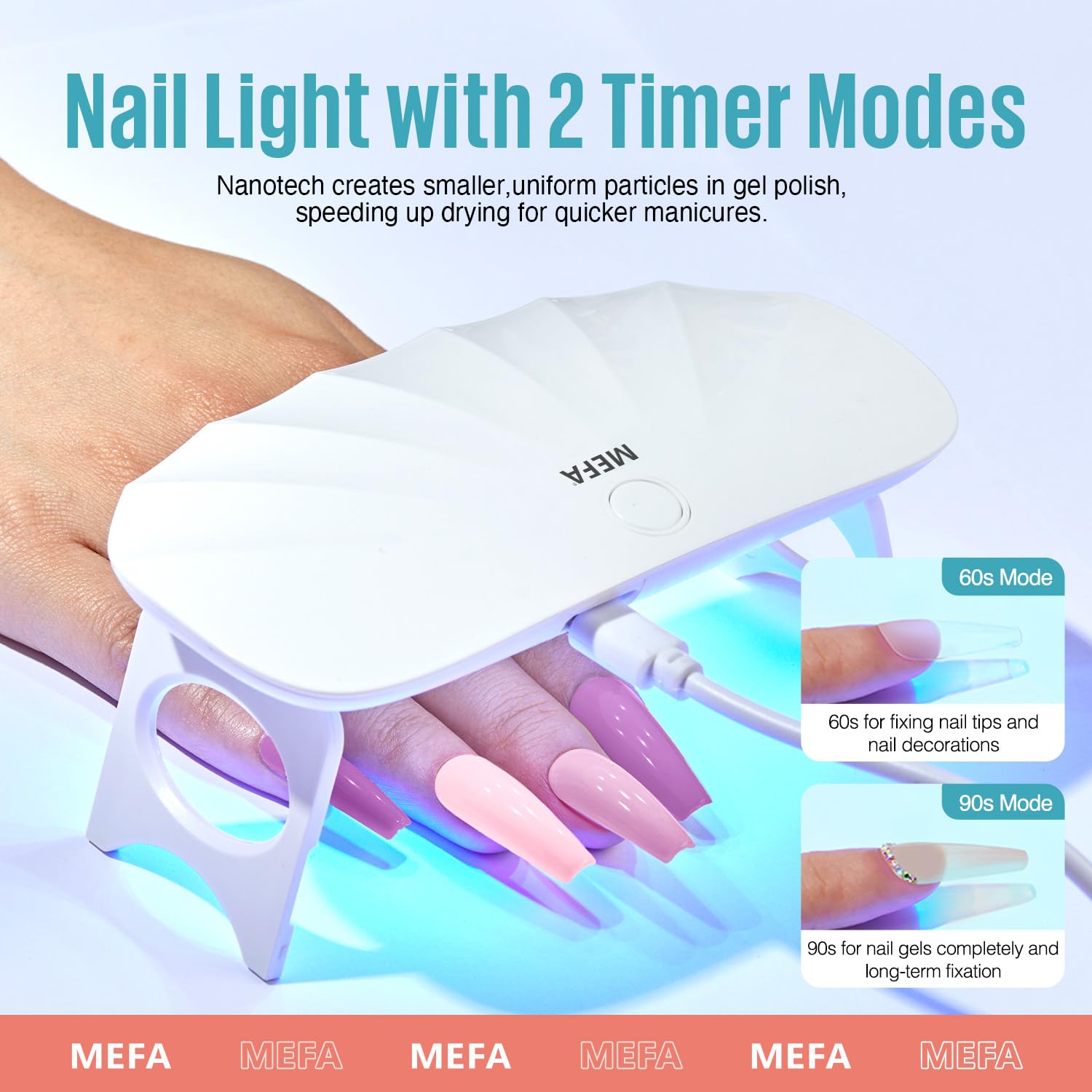 MEFA 19 Pcs Gel Nail Polish Kit with U V Light, 12 Colors All Seasons Soak Off Gel Polish Nail Set with Base Top Coat Essential Manicure Tools Beginners Salon Nails Art