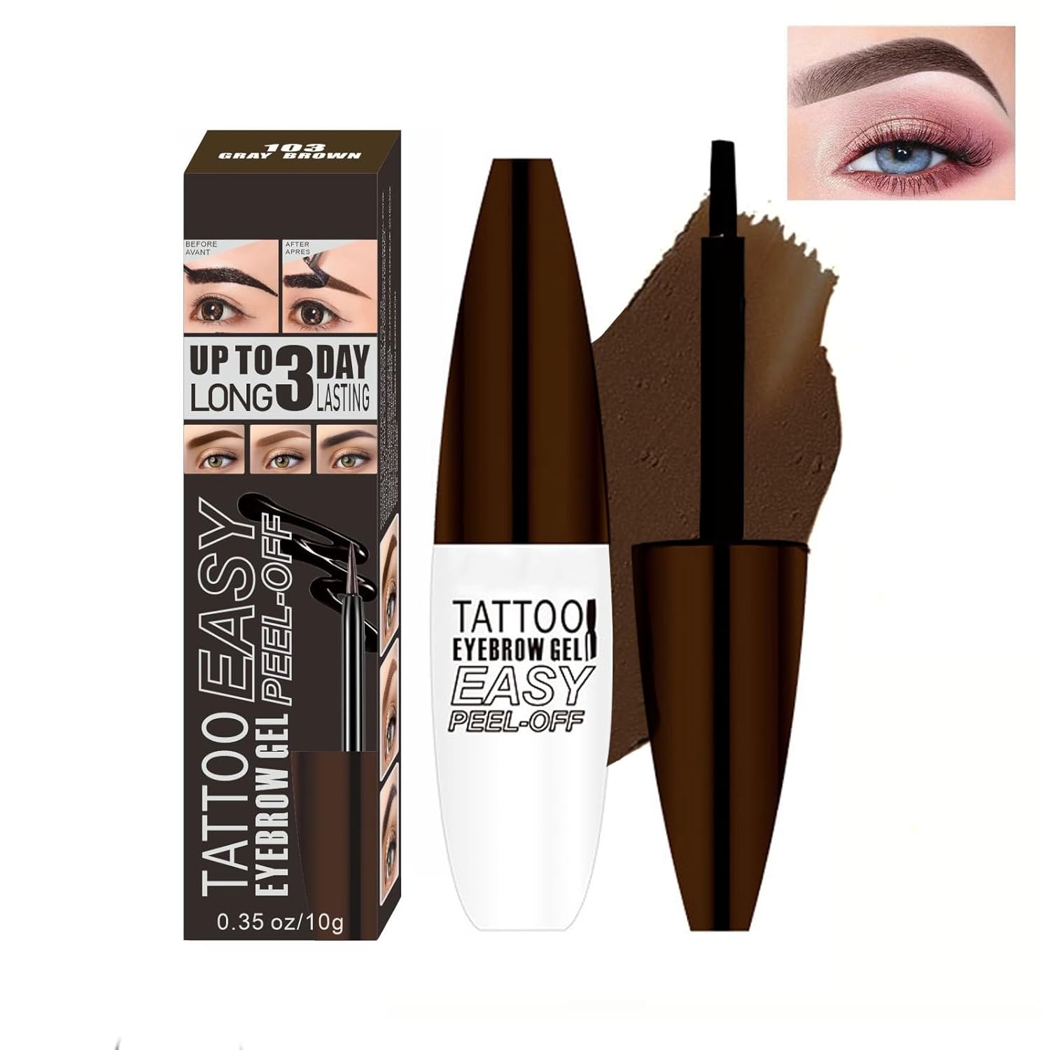 Tattoo Peel Off Eyebrow Gel Tint, Long Lasting Brow Tint, Transfer Proof and Waterproof Tint Peel Off Brow Gel, Last Up to 3 Days, For Fuller & Defined Brows Makeup, Gray Brown