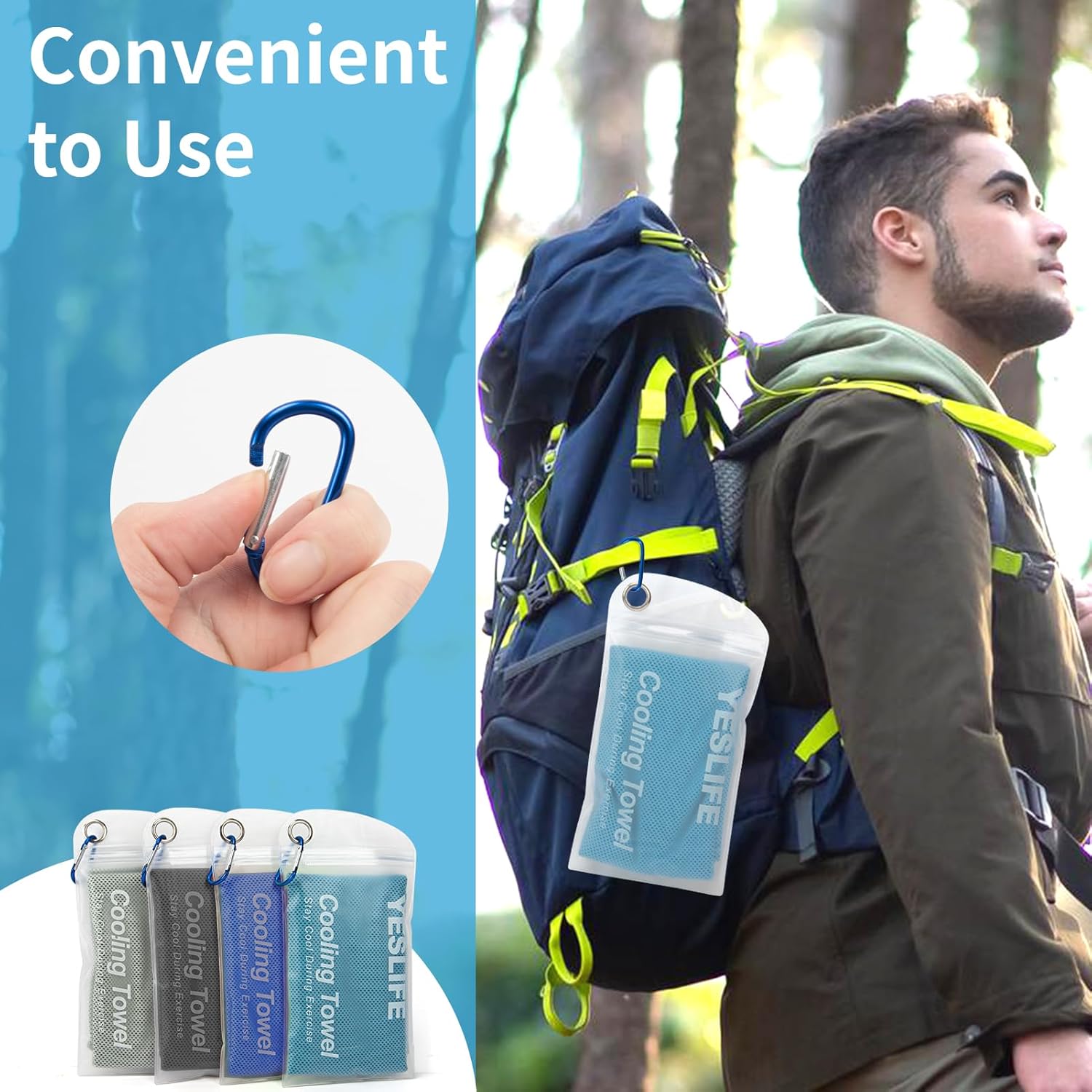 YESLIFE 4 Pack Cooling Towel 40"x12", Gym Towels for Men and Women, Soft Breathable Workout Towels for Yoga, Running, Sport, & More (Black, Dark Blue, Blue, Grey)