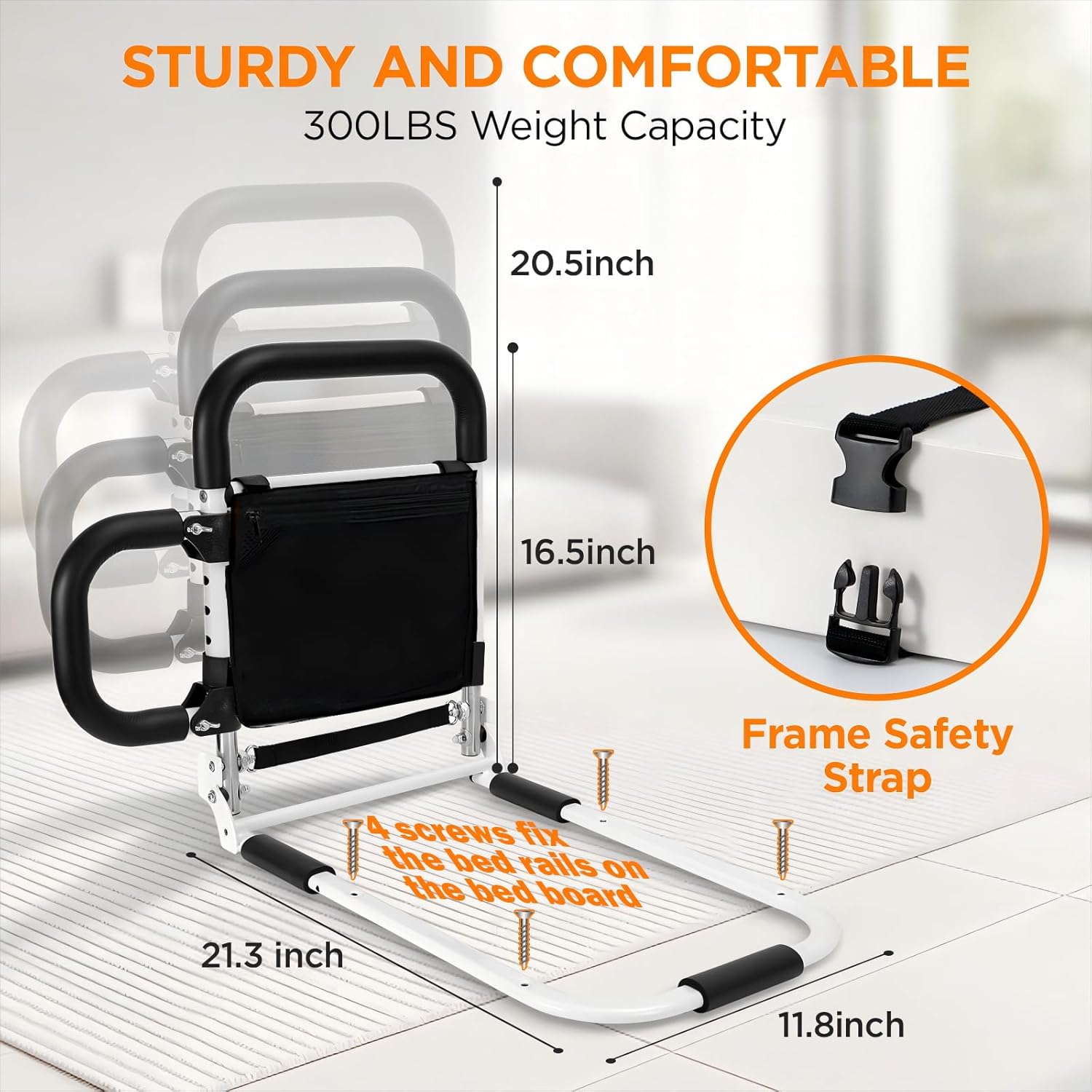 - DUAL GRAB BAR,NON-SLIP BOTTOM,EASY INSTALLATION: Practical dual grab bar design, flat tube and three sponges at the bottom of the bedrails can effectively prevent sliding.Assembly can be completed by installing only 4 screws.
