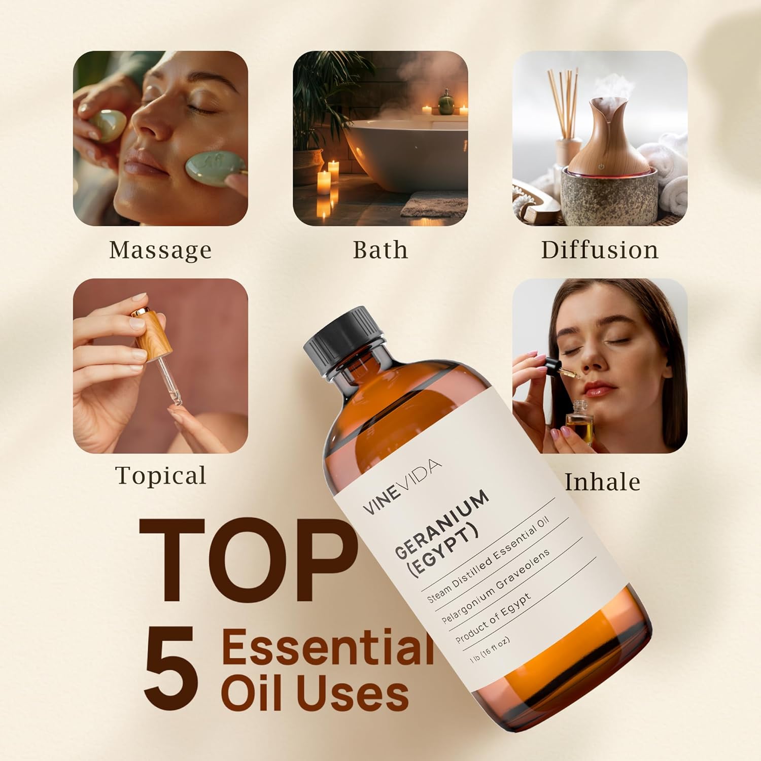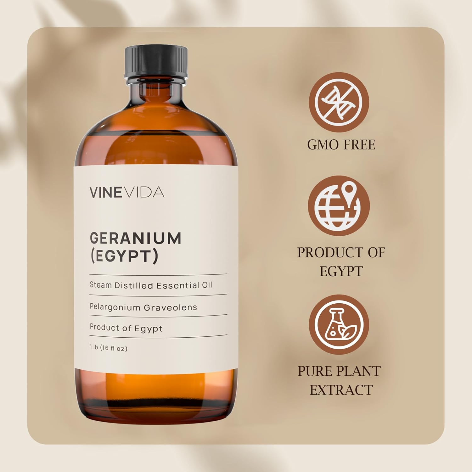 VINEVIDA Geranium (Egypt) Essential Oil 32 oz - Undiluted Geranium (Egypt) Oil 32 oz - Geranium (Egypt) Candle Oil Scent - DIY Candle Scents for Candlemaking - Bulk Essential Oil for Soap Making