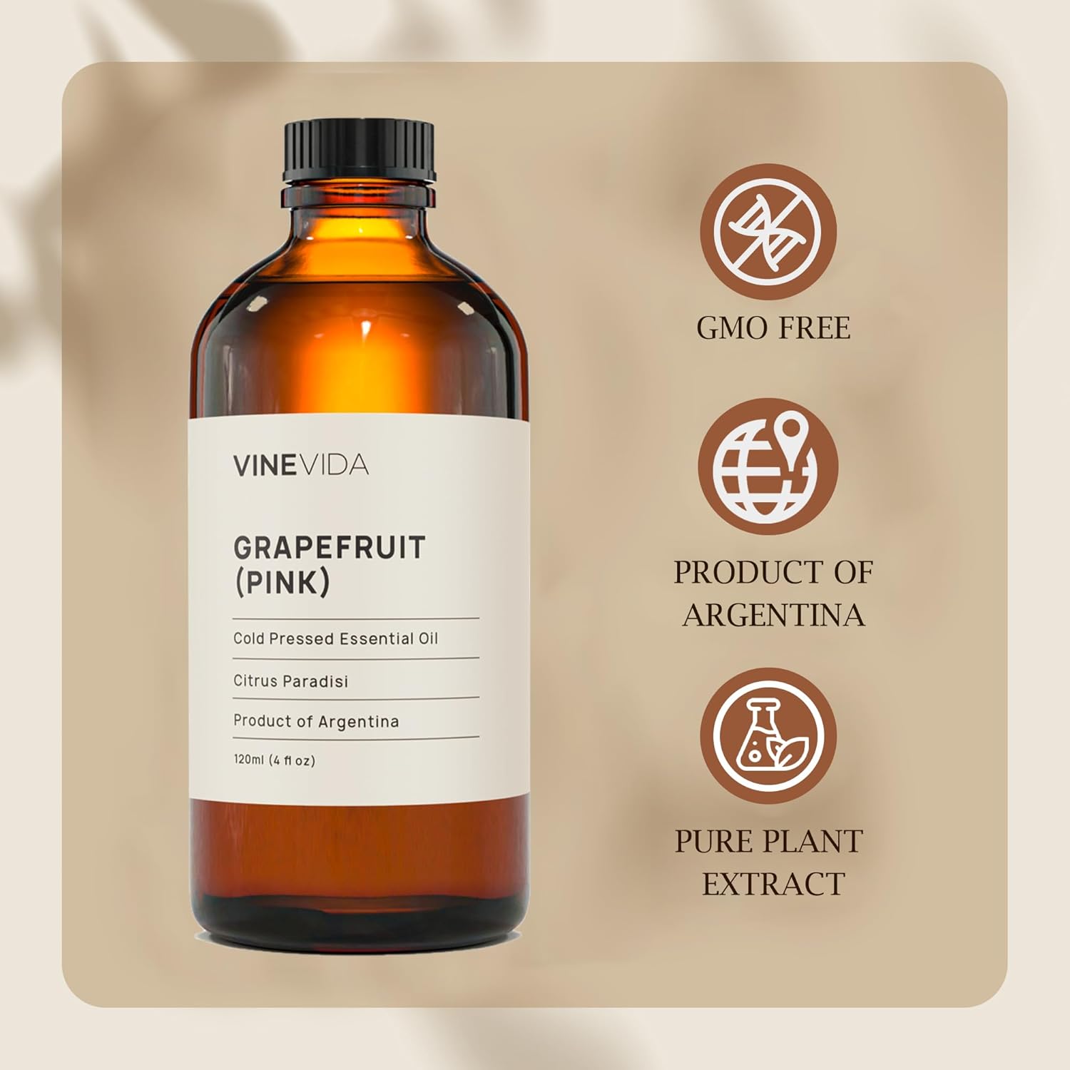 VINEVIDA Pink Grapefruit Essential Oil 4 oz - Undiluted Candle Oil Scent for DIY Candlemaking - Bulk Oil for Soap Making