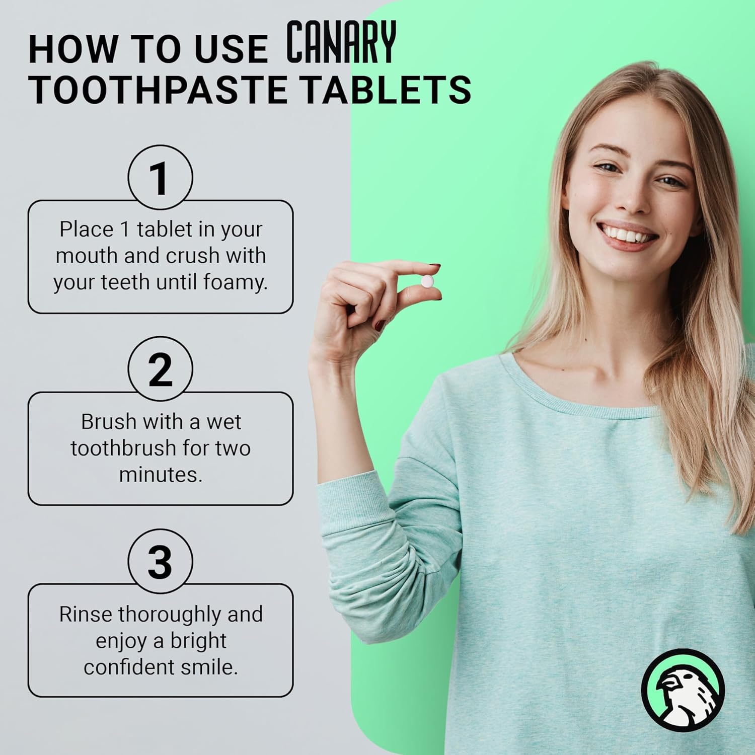 Canary Nano Hydroxyapatite Toothpaste Tablets Coconut Mint - Remineralizing, Fluoride Free, All Natural Tabs with Xylitol - Great for Travel, Plastic Free - 189 Count