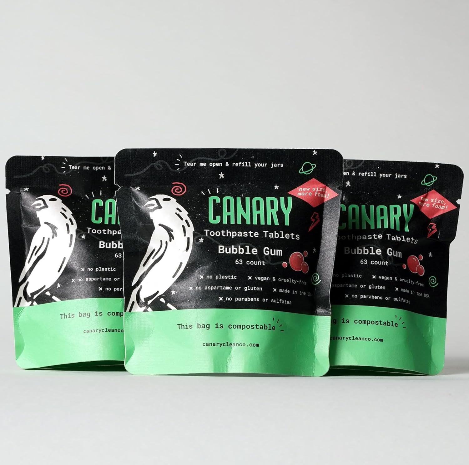 Canary Nano Hydroxyapatite Toothpaste Tablets Bubble Gum - Remineralizing, Fluoride Free, All Natural Tabs with Xylitol - Great for Kids, Plastic Free - 189 Count