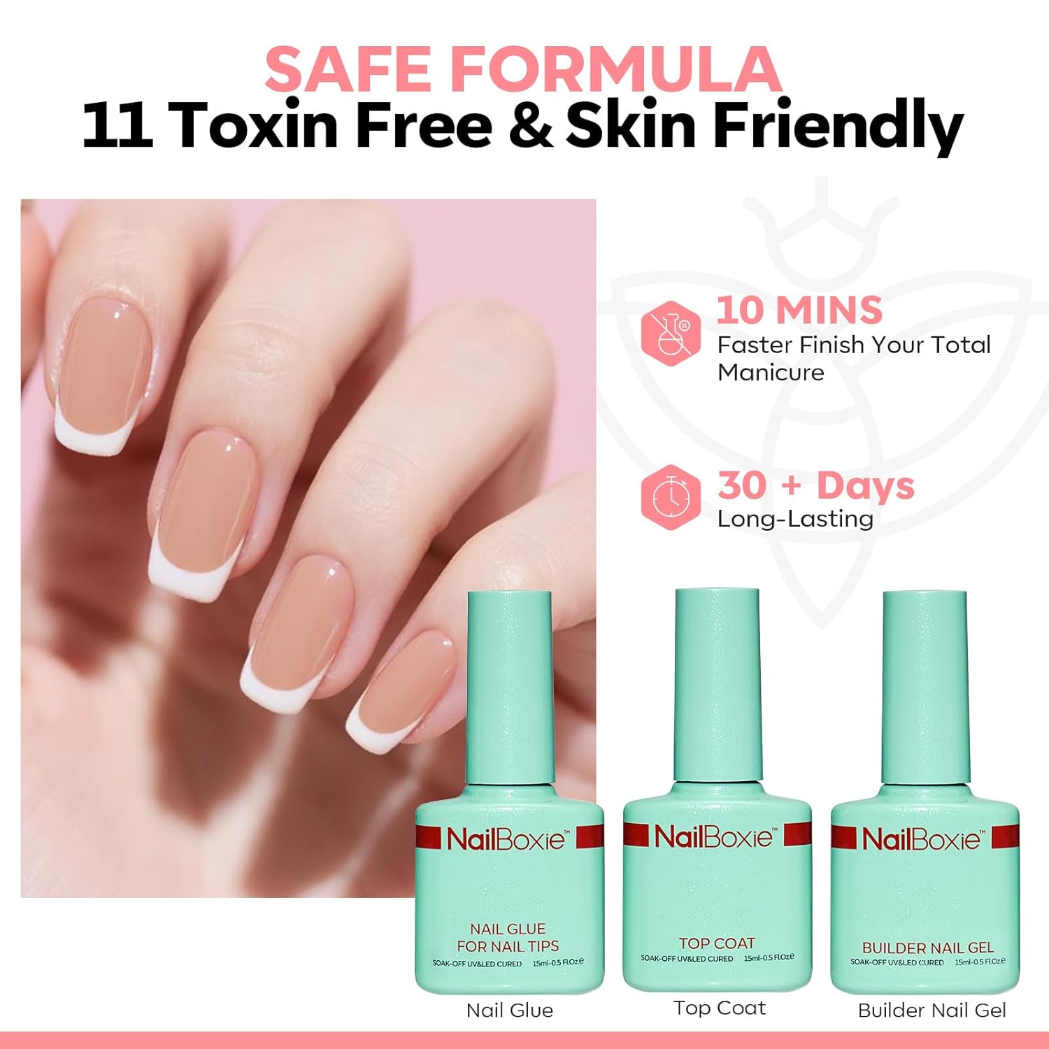 - Achieve Salon-Quality Nails at Home:Make at-home manicures faster and easier than ever before. This press on nails for women includes French press-ons, nail glue, builder gel, top coat, a mini LED lamp, nail buffer, and a crystal stick. Everything you need for a flawless manicure in one set.