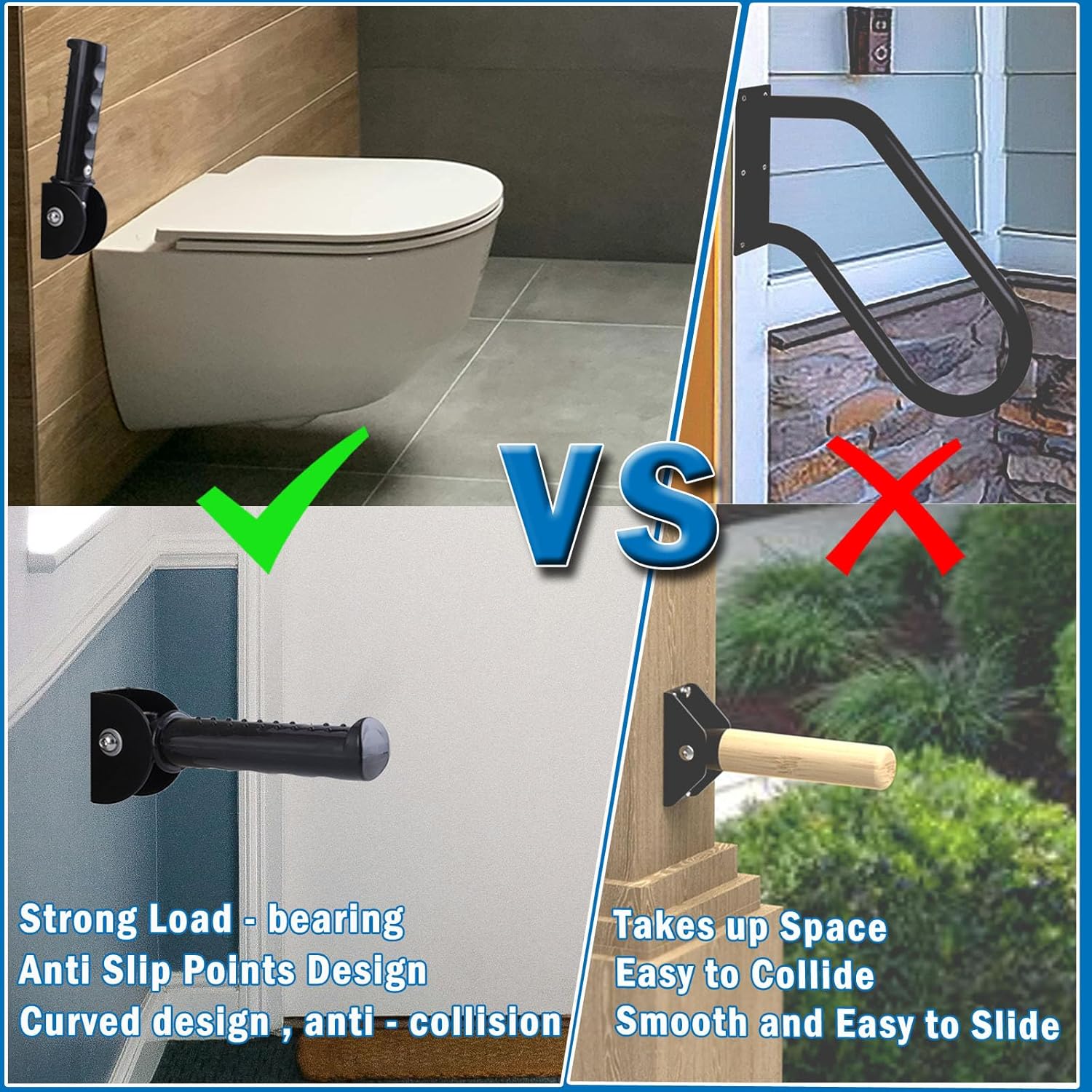 - 【Versatile Use】The handrail can be a normal door handle, indoor or outdoor, or be an assistive helper for the elderly or young groups for daily use. Ideal for installation in doorways, stairs, bathrooms, toilets, etc