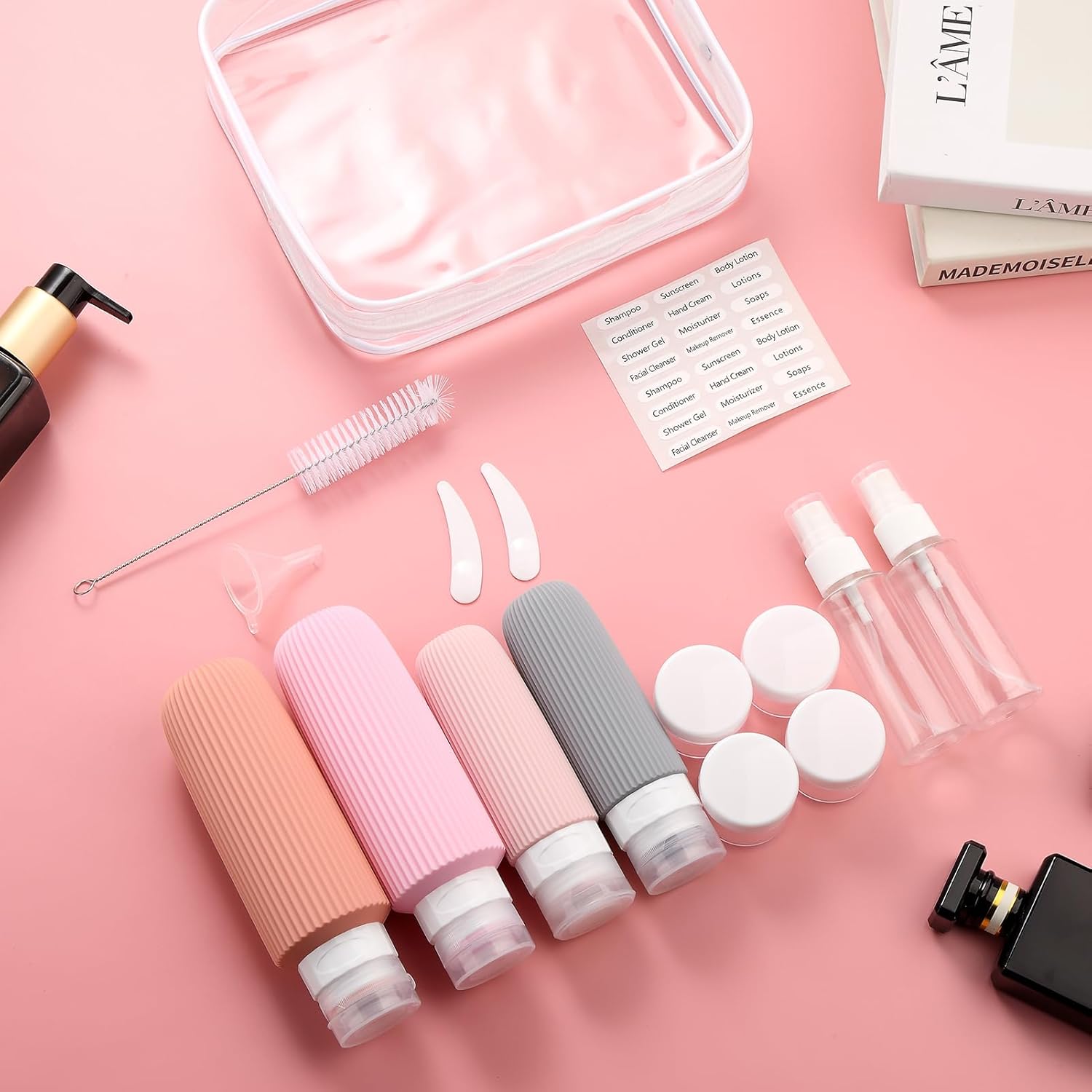 16 Pack Travel Bottles for Toiletries, Oversize Silicone Travel Containers jar for Toiletries, Leak Proof Refillable Liquid Shampoo And Conditioner Travel Essentials toiletry Bottles