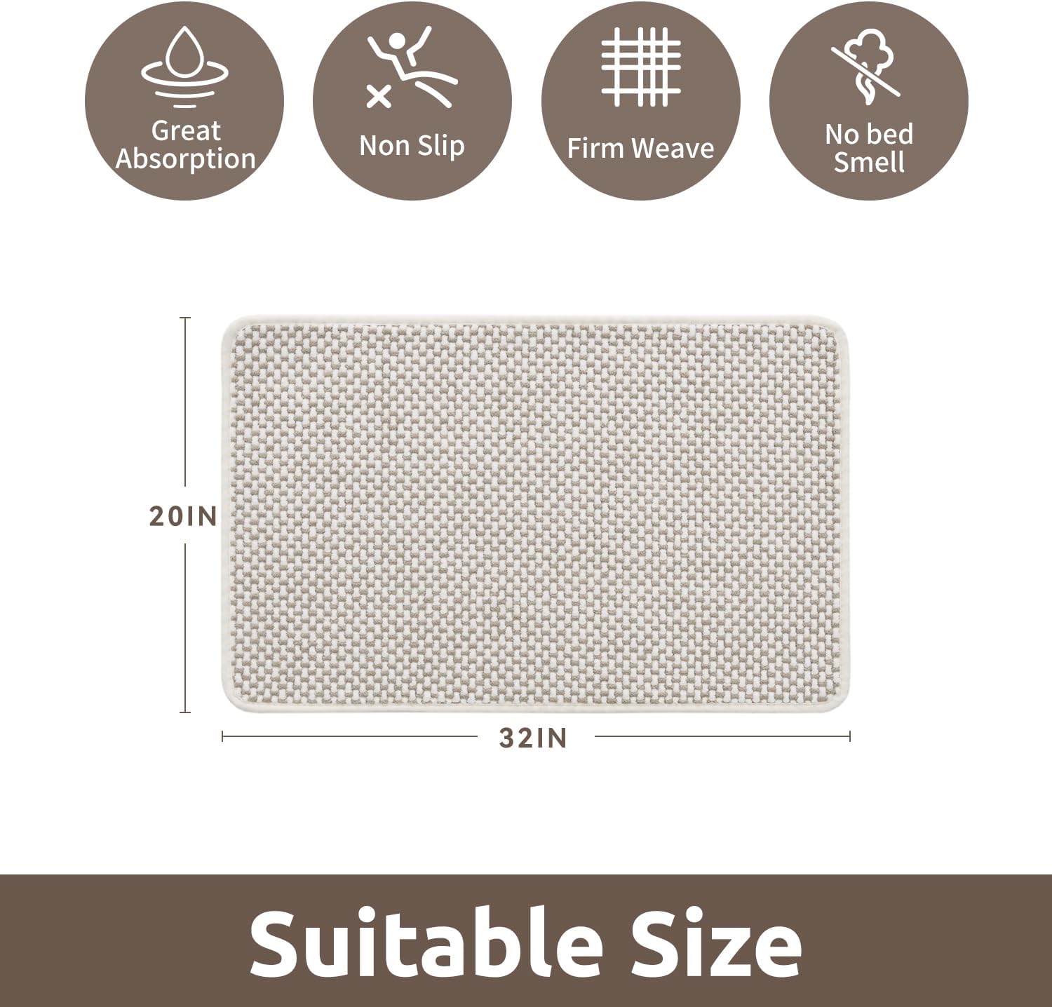 - [Super Absorbency] Tightly woven non slip bath mat with premium material quickly absorbs water keep floors dry and clean. Breathable structure makes dry quickly. Ideal bathroom floor mat for daily use, it helps maintain a clean, comfortable, and slip-free environment.