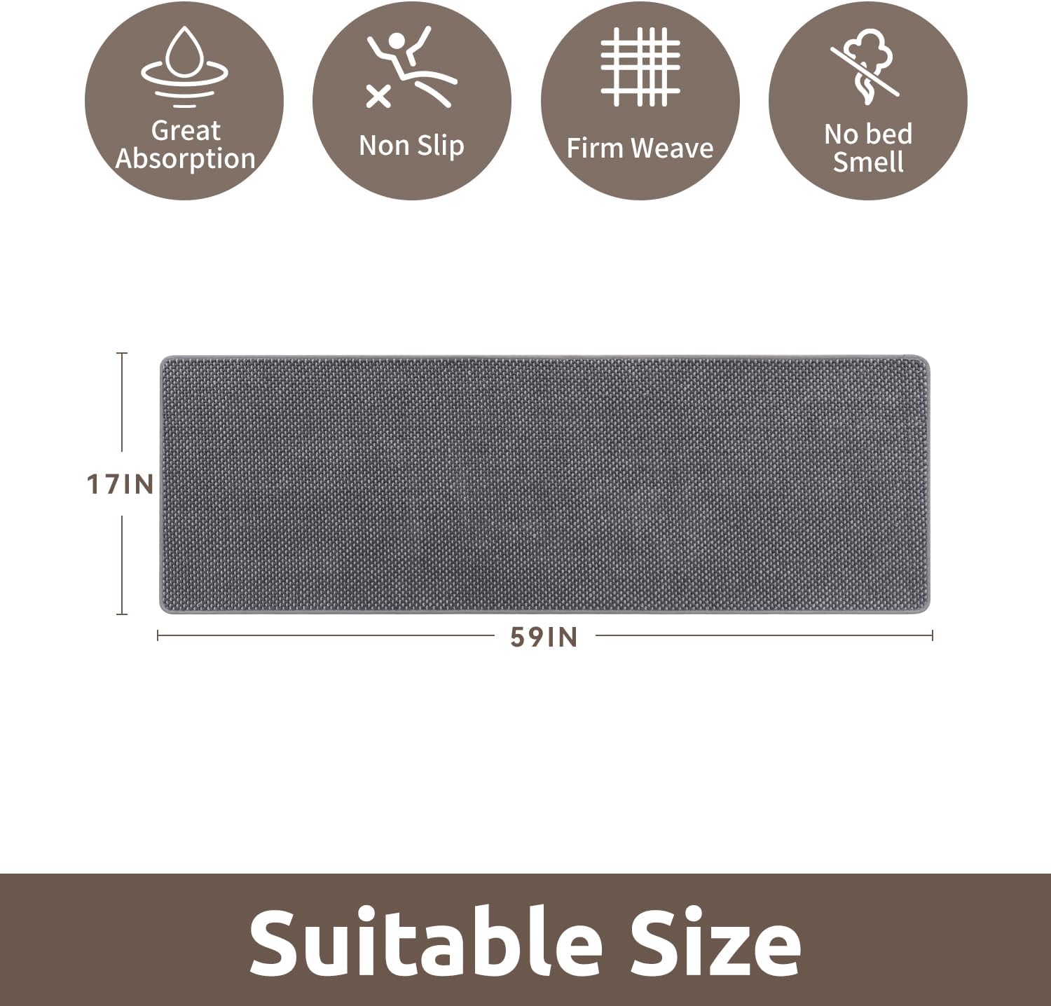 - [Super Absorbency] Long bathroom runner rugs with premium material absorbs water quickly, keep floors dry and clean. Tightly woven fibers allow bath runner to dry quickly and stay fresh. Ideal bathroom floor mat for daily use, it helps maintain a clean, comfortable, and slip-free environment.