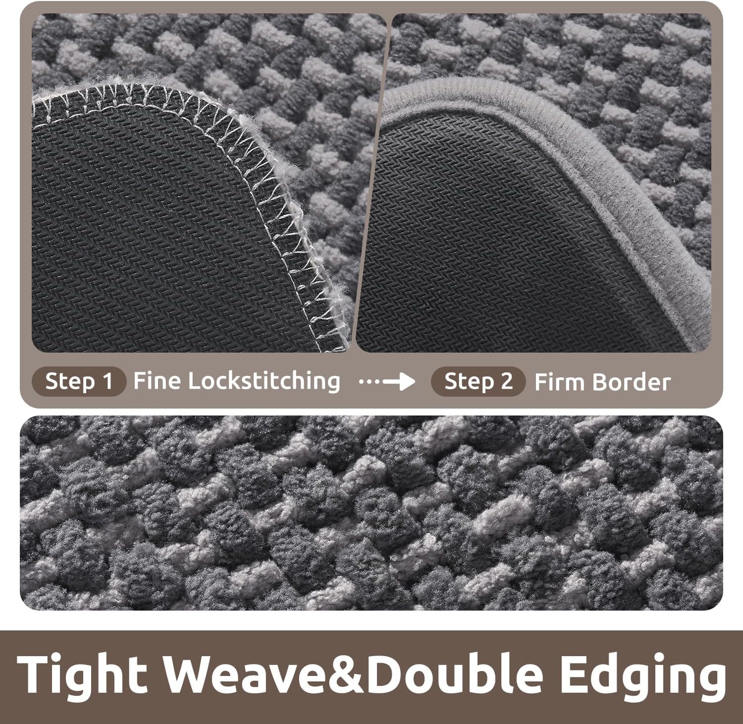 - [Update Double Edge & Color] Tightly woven bathroom runner with double locking edge process makes bathroom runner rug more stable, not easily dispersed, more robust than most of others chenile bathroom rugs. Stylish two-color design versatile, light and cozy chenille bathmat makes your feet feel cozy and relaxed.