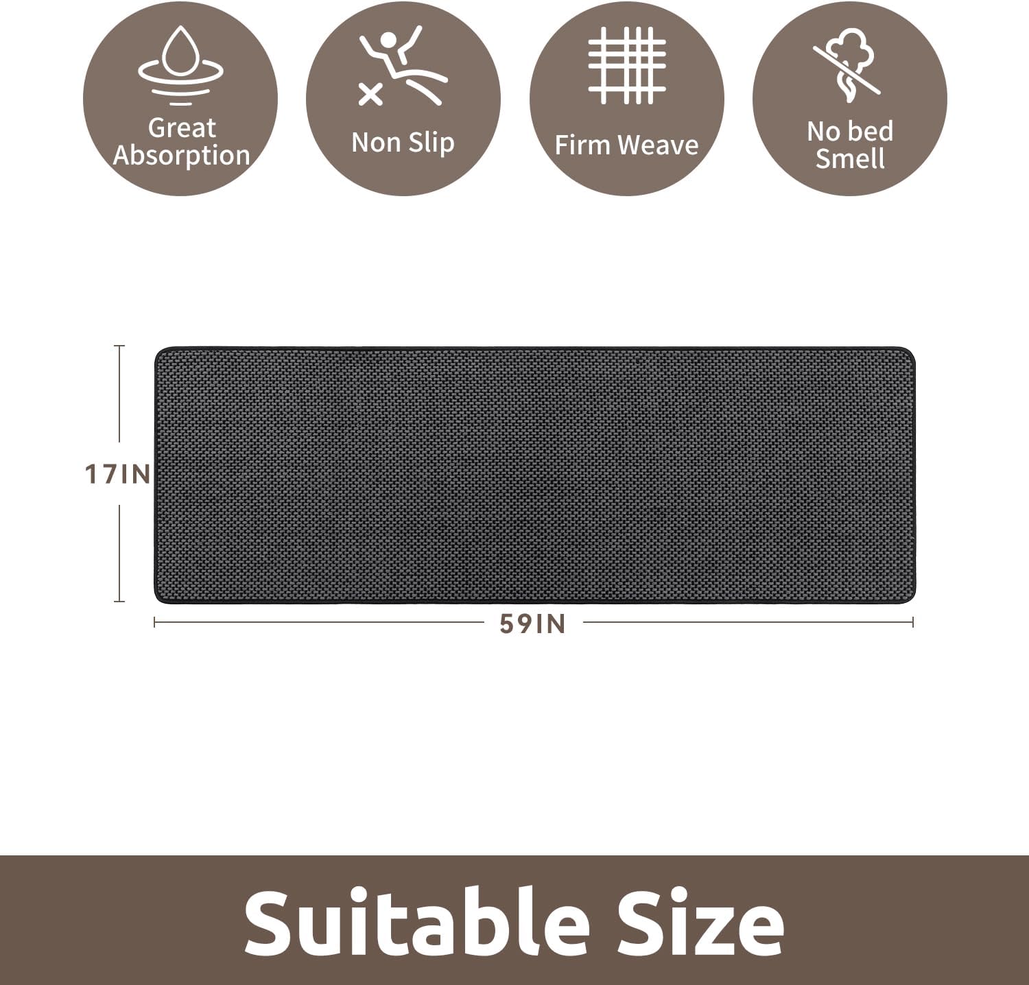 - [Super Absorbency] Long bathroom runner rugs with premium material absorbs water quickly, keep floors dry and clean. Tightly woven fibers allow bath runner to dry quickly and stay fresh. Ideal bathroom floor mat for daily use, it helps maintain a clean, comfortable, and slip-free environment.
