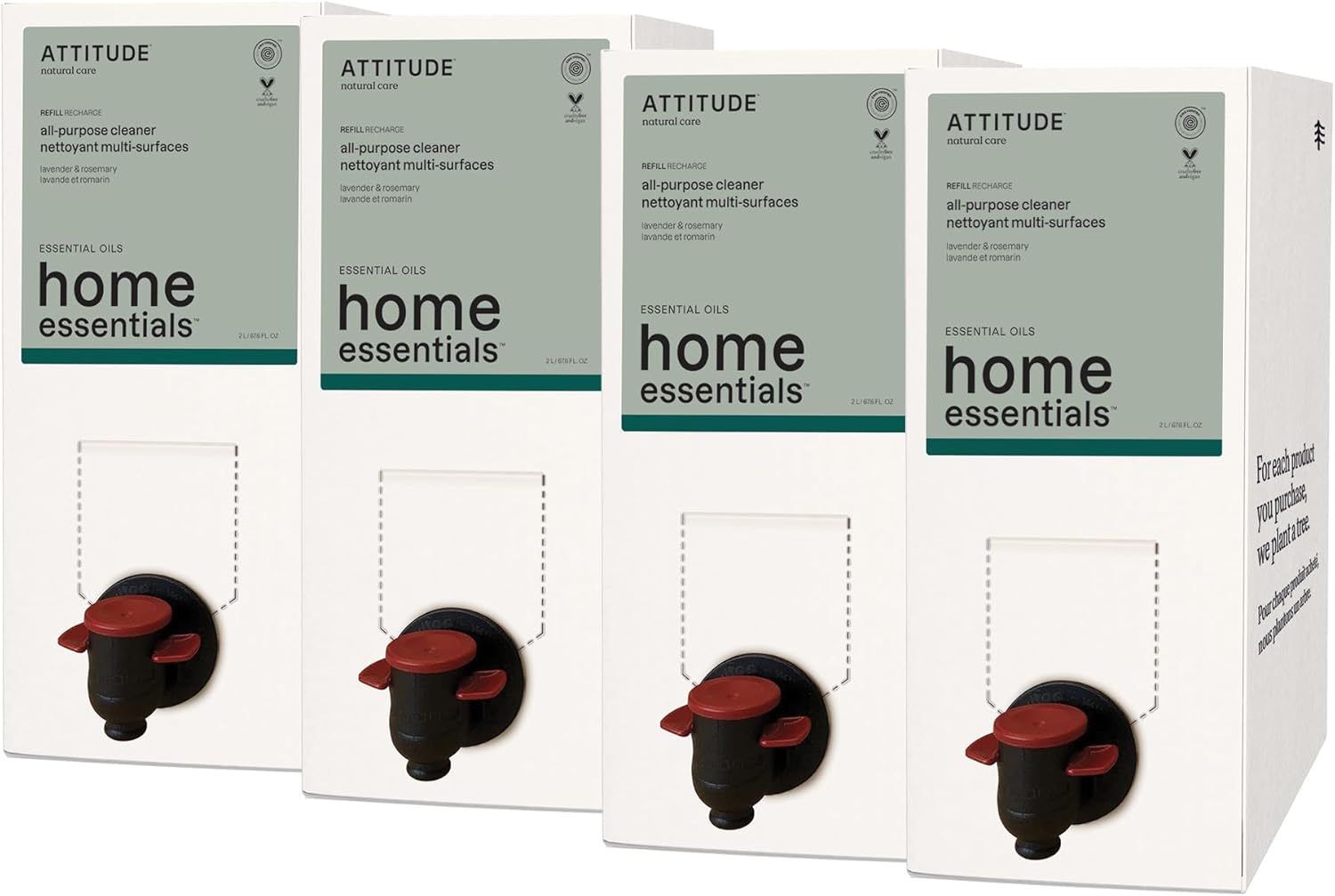 ATTITUDE Multi-Purpose Cleaner with Essential Oils, EWG Verified, Plant and Mineral-Based Ingredients, Vegan Household Products, Bulk Refill, Lavender and Rosemary, 67.6 Fl Oz (Pack of 4)
