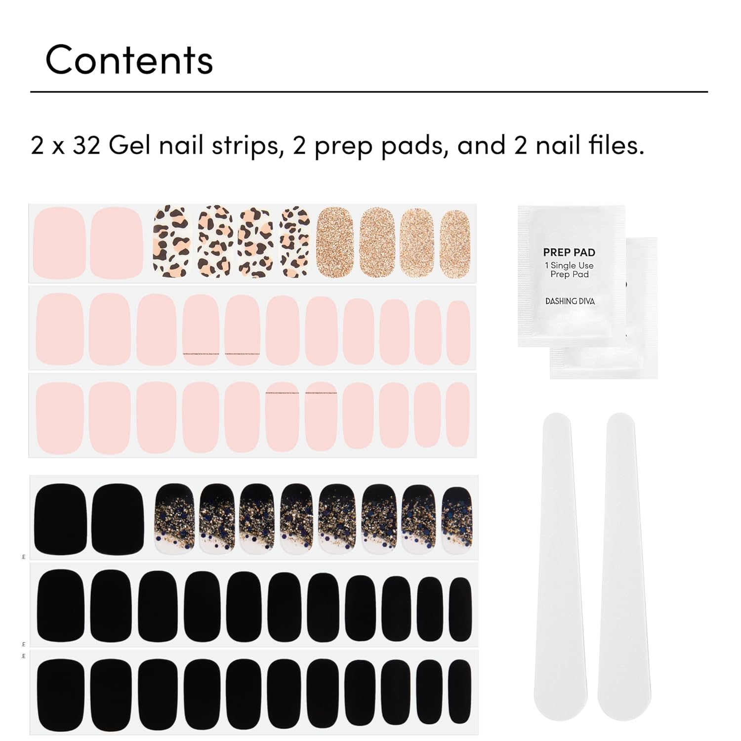 Dashing Diva Gloss Nail Strips Bundle - The Black Cheetah Collection- Cheetahlicious & Hollywood Lane - UV Free, Chip Resistant, Long Lasting Gel Stickers - Contains 2 Sets