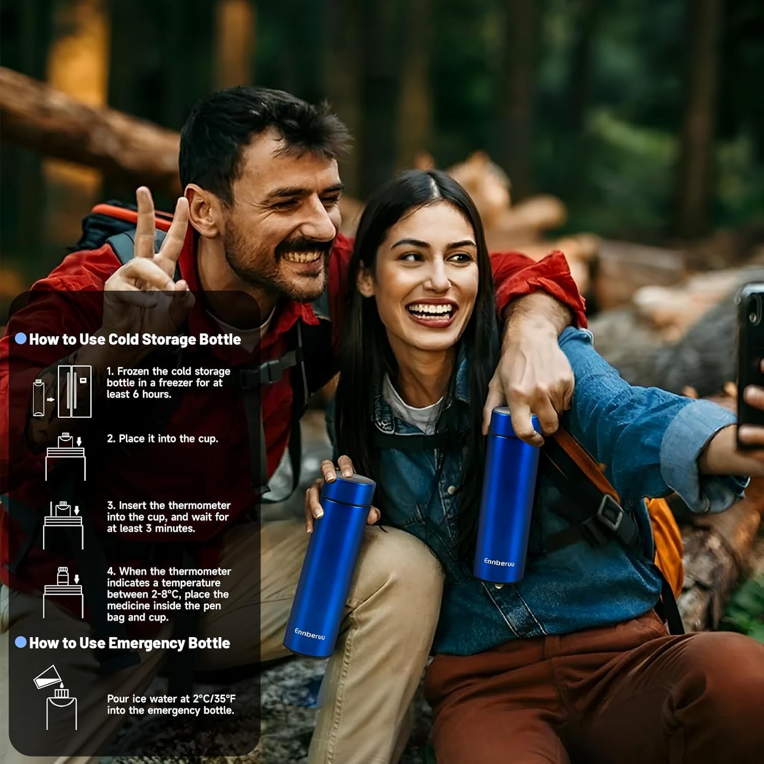- The Package Contains: 1 x dual-layer 304 stainless steel medical cooler, 1 x cooling gel ice bottle, 1 x emergency ice water bottle, 1 x mercury thermometer, 1 x velvet pen bag, 1 x cooler handbag, 1 x instruction manual. Whether you’re a frequent traveler, a daily commuter, an avid fisherman, a hiker, or a weekend camper, the EnnbeRuu travel medicine kit is your ideal companion.