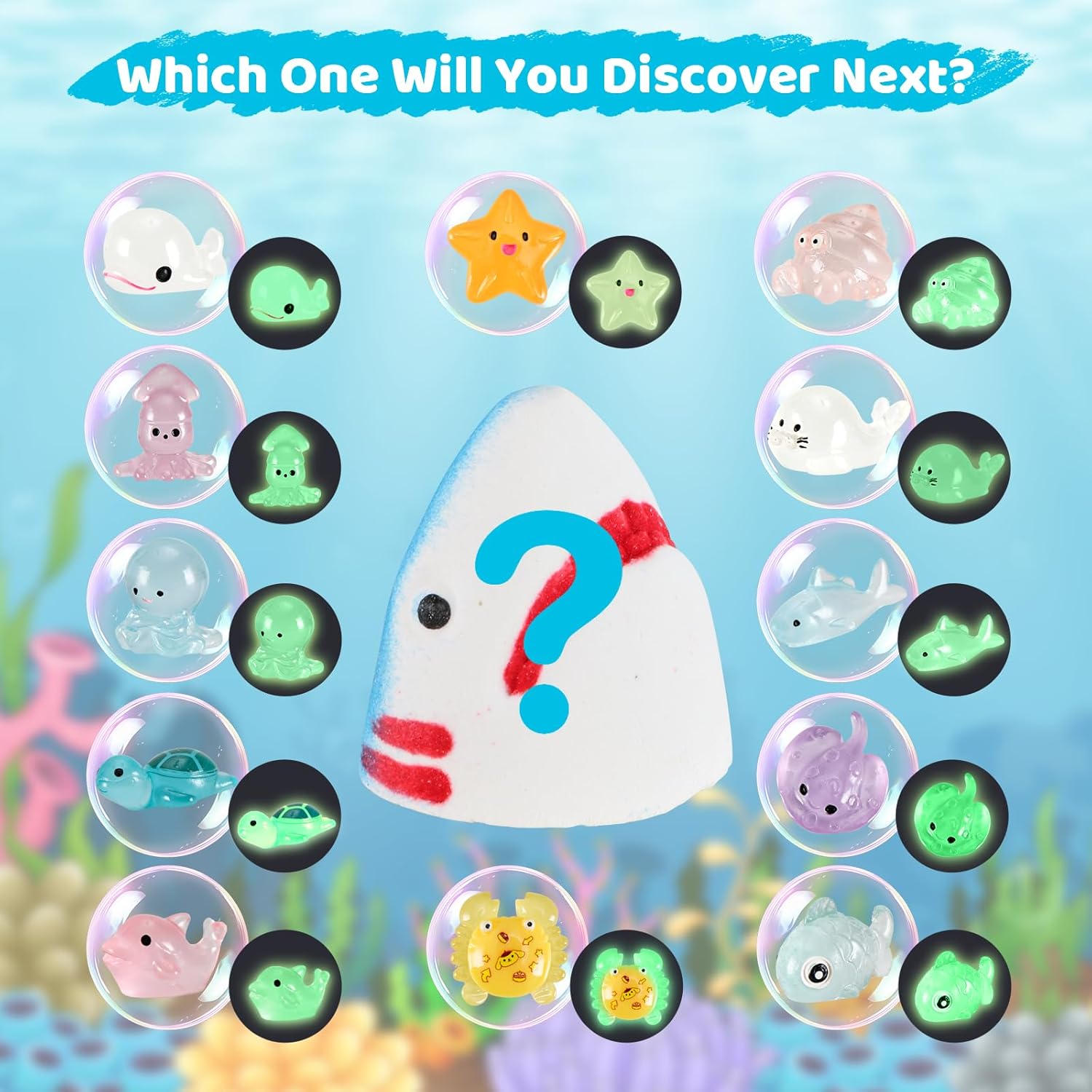 - Shark Bath Fun: Make bath time exciting with shark-head bath bombs for kids! Each bomb fizzes into bubbles and reveals a glow-in-the-dark ocean toy, turning reluctant bathers into eager adventurers.