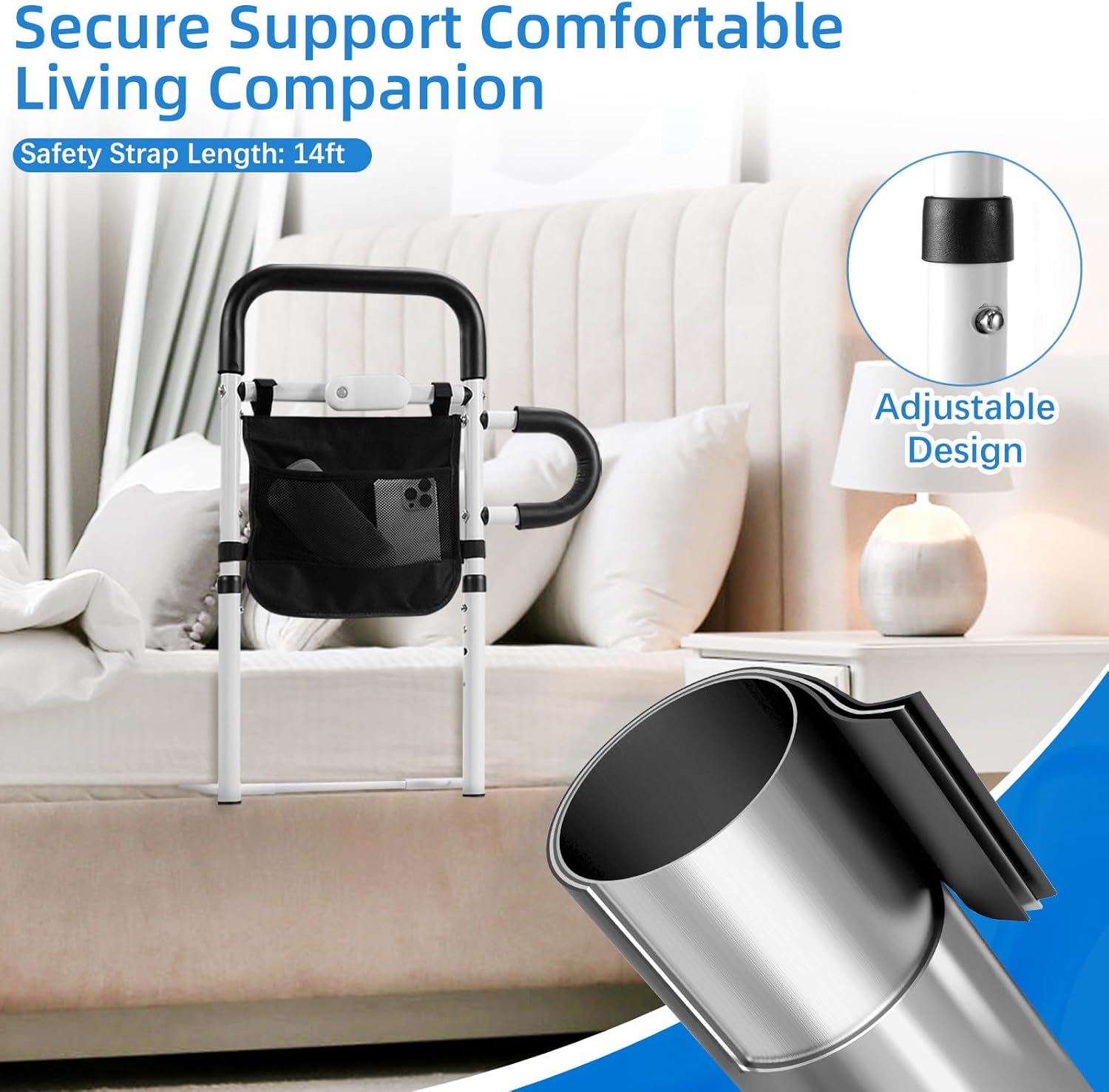 - 【Wider NON-SLIP HANDRAIL】The Senior Bed rail Handrail features non-slip foam padding on both rails and side rails with wider and smaller handles. Elderly assistance products provides a secure and comfortable grip. Quality side pockets for easy storage. Side rails and sturdy frame grasp up to 300 pounds to help seniors get in and out of bed safely