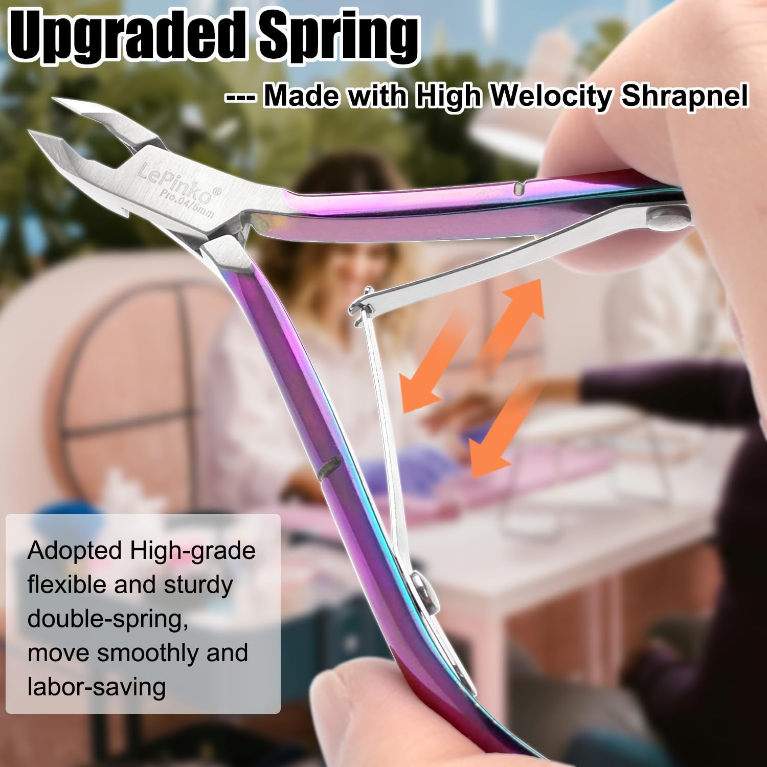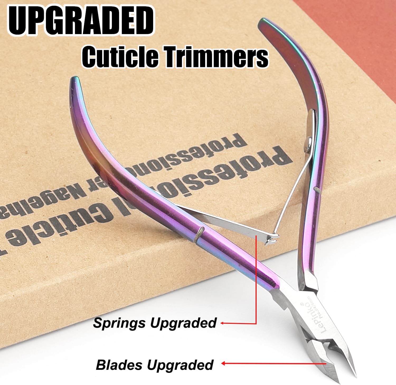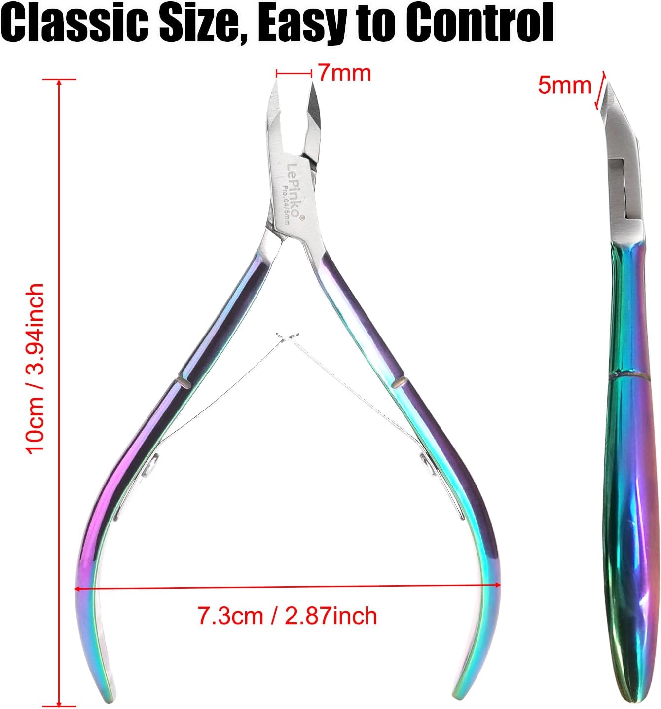 LePinko 4 Packs Upgraded Cuticle Trimmer kit, Sharp Dead Skin Clipper, Labor-Saving Cuticula Remover for Fingernail Toenail, Manicure Pedicure Tool for Women Men, 5mm Jaw, Rainbow Color