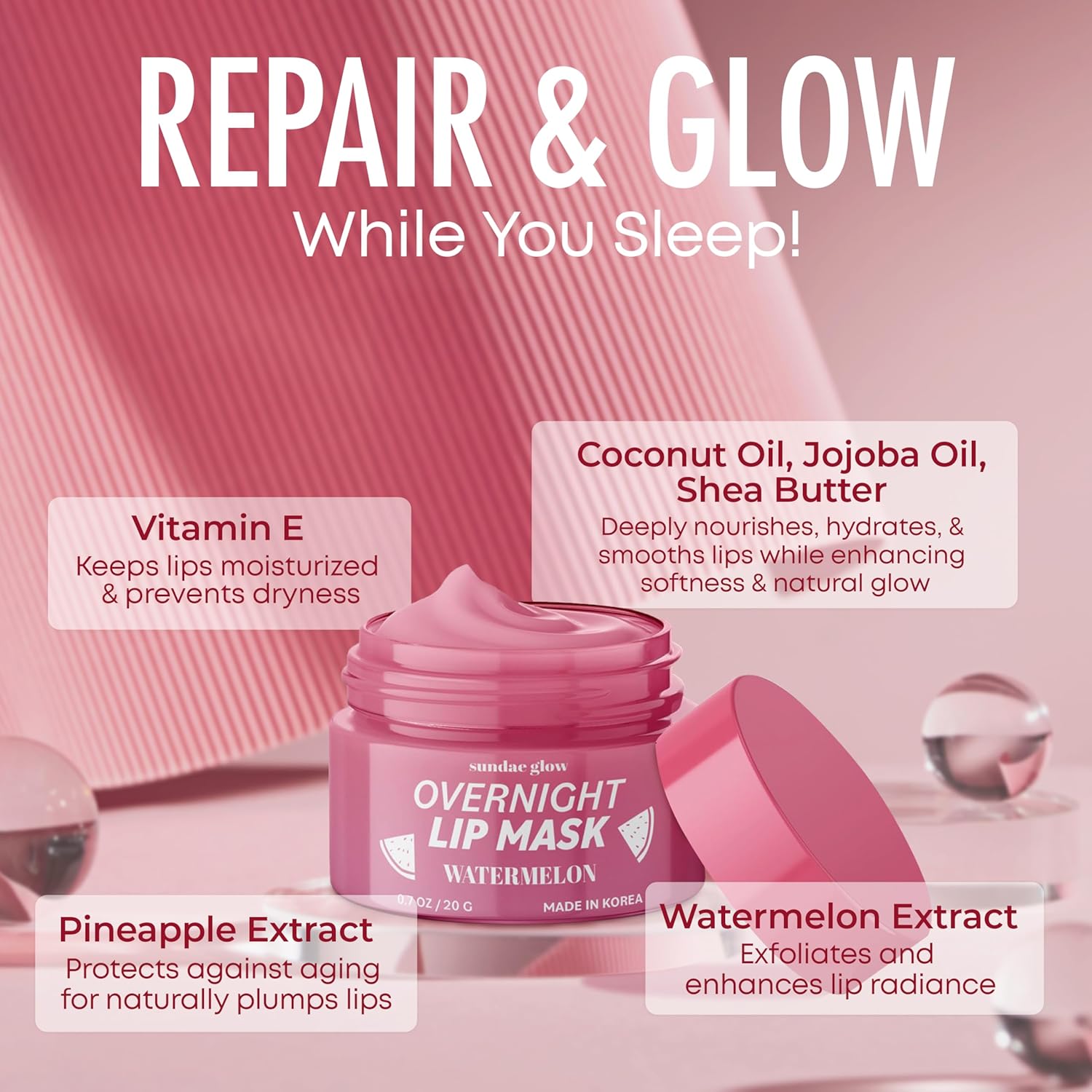 Lip Mask with Watermelon – Overnight Lip Repair, Intense Hydration & Smoothing – Dermatologist Tested, Korean Skin Care – 95% Natural, Clean Beauty, Cruelty-Free – 1 Pack