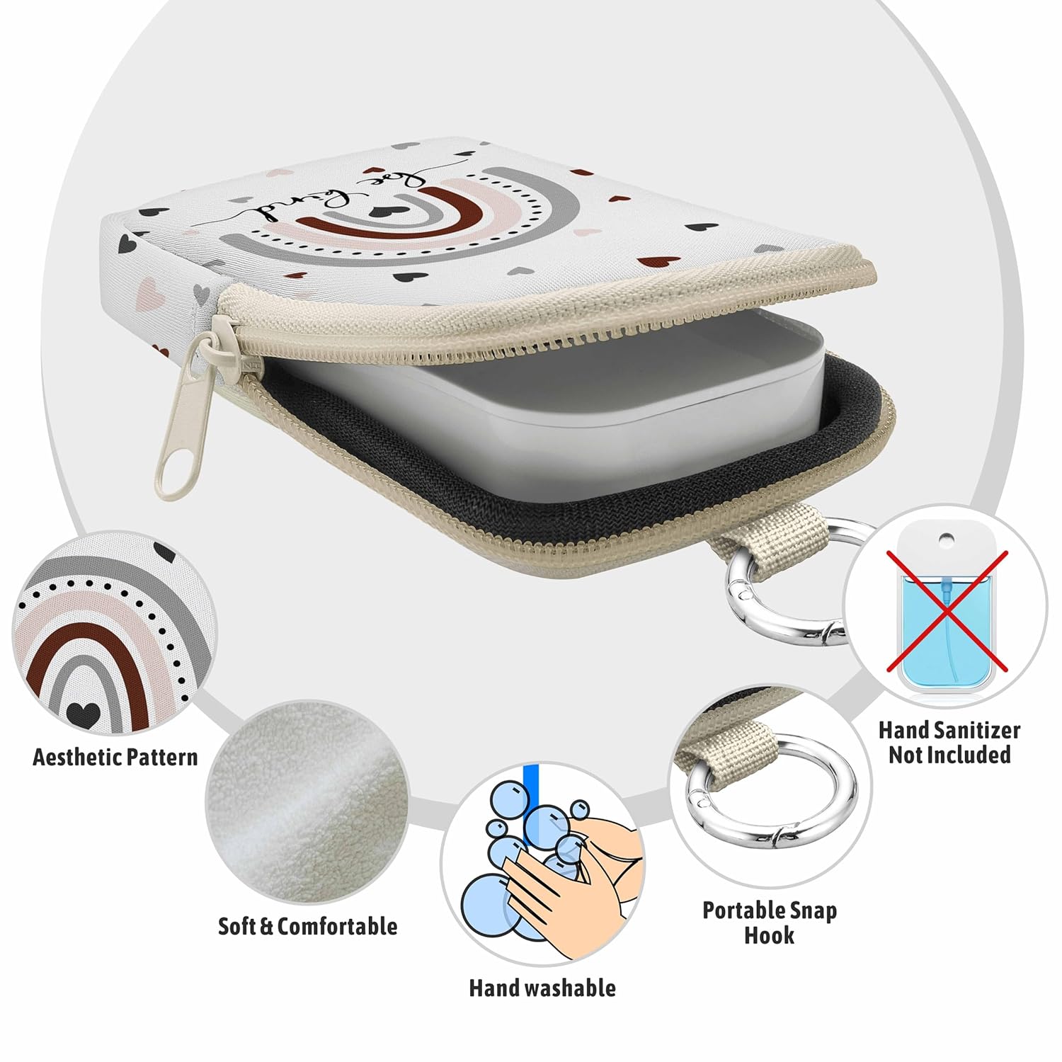- Convenient Use: Smooth zipper and snap hook allow easy attachment to backpacks, belts or keychains. Keep your hand sanitizer accessible at all times, ensuring clean and hygienic hands. Compact size fits effortlessly in pockets or bags
