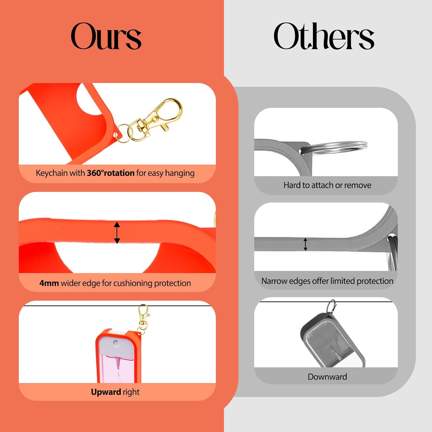 - 360° Rotating Keychain for Convenience: Equipped with a keychain featuring 360° rotation, the case can be easily attached to bags, keys, or belts for effortless portability, keeping your hand sanitizer always within reach.