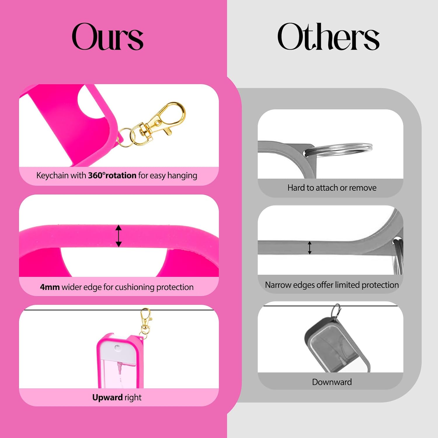 - 360° Rotating Keychain for Convenience: Equipped with a keychain featuring 360° rotation, the case can be easily attached to bags, keys, or belts for effortless portability, keeping your hand sanitizer always within reach.