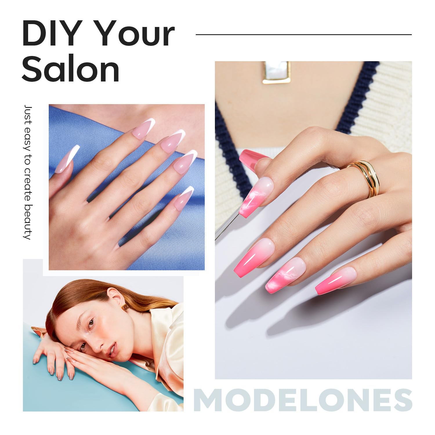 - Multiple Application: Modelones nails tips can be used for gel nail polish, liner gel art, press on nails, acrylic nails, dip powder nails, poly nail extension gel, great for nails salon, DIY at home nails art. Wonderful for every and any event