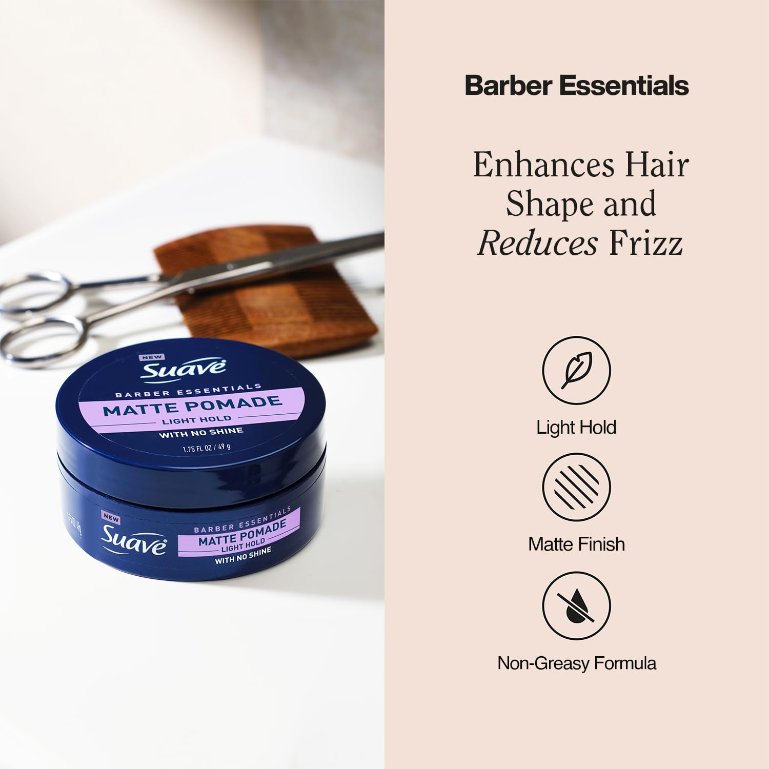 Suave+ Matte Pomade for Men’s Hair Styling 4-Pack – Light Hold, No Shine, Shaping Cream & Frizz Control, Barber Essentials, 1.75 Oz Ea