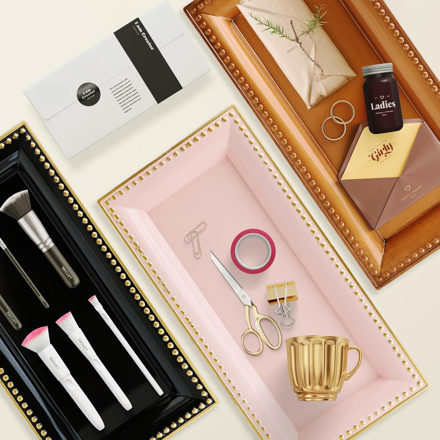 - Multi-Use Functionality: Perfect as a sink tray, vanity tray, bathroom organizer, serving tray for food and drinks, or a decorative display for jewelry and ornaments. Use it anywhere in your home to keep items organized and easily accessible.