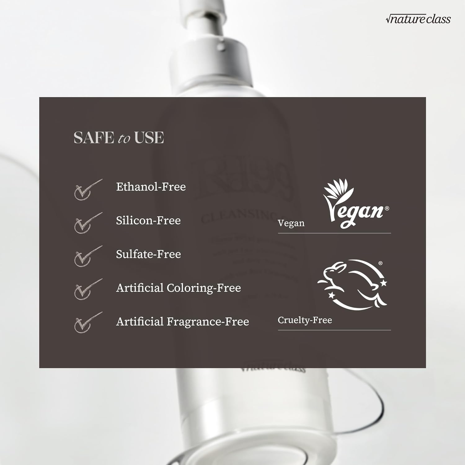 - Rapid Emulsification for Deep Cleansing: Nature Class R199 Cleansing Oil transforms into a milky texture upon contact with water, allowing quick removal of makeup, dirt, and oils. Its deep melting technology ensures a thorough cleanse, leaving no residue behind. You’ll feel refreshed without the oily after-feel, making it perfect for daily use
