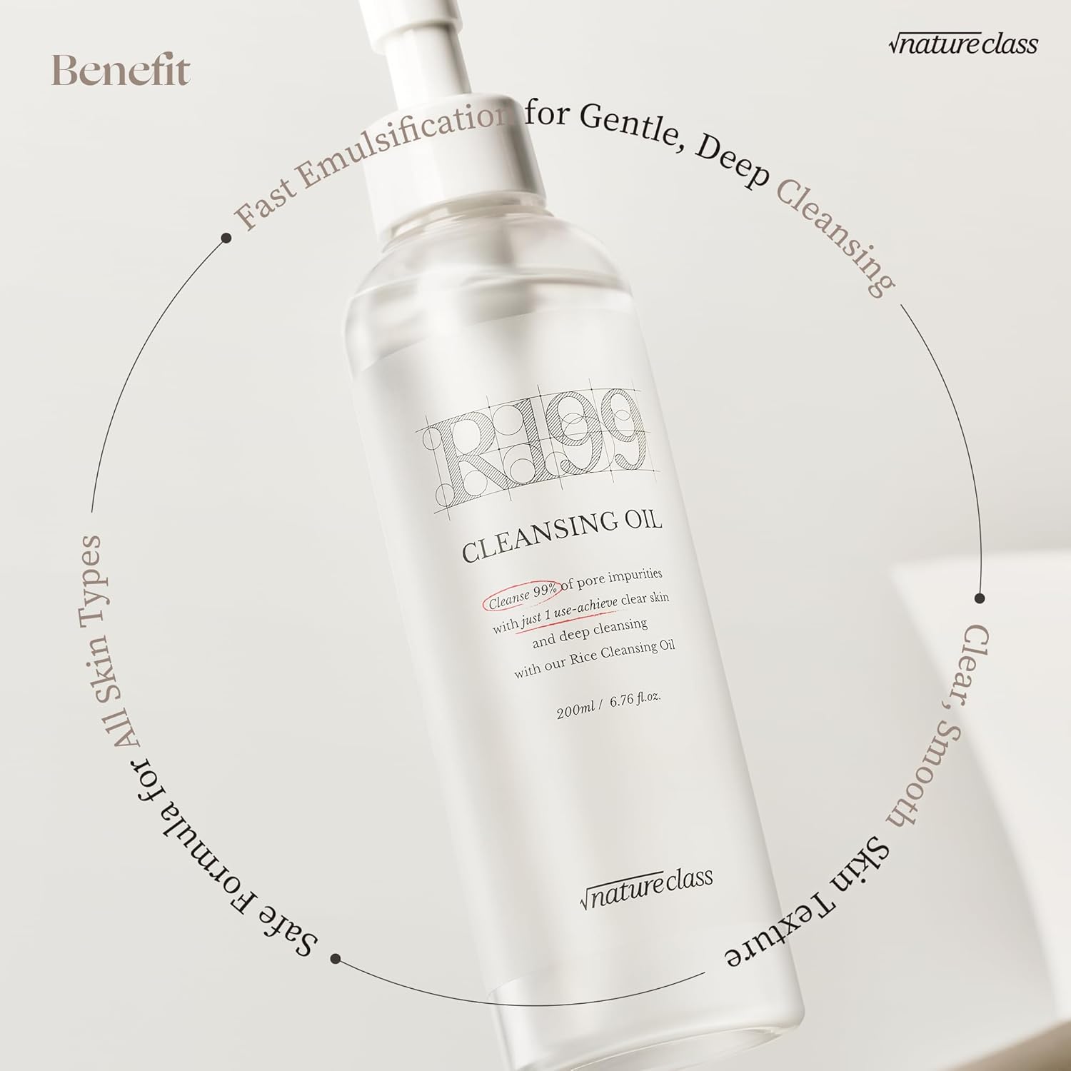 R199 Rice Cleansing Oil- Fast Emulsification, Pore-Cleansing, Blackhead Removal without Clogging Pores, Makeup Dissolving, and Hydrating Formula, Korean Skincare 6.76 Fl Oz