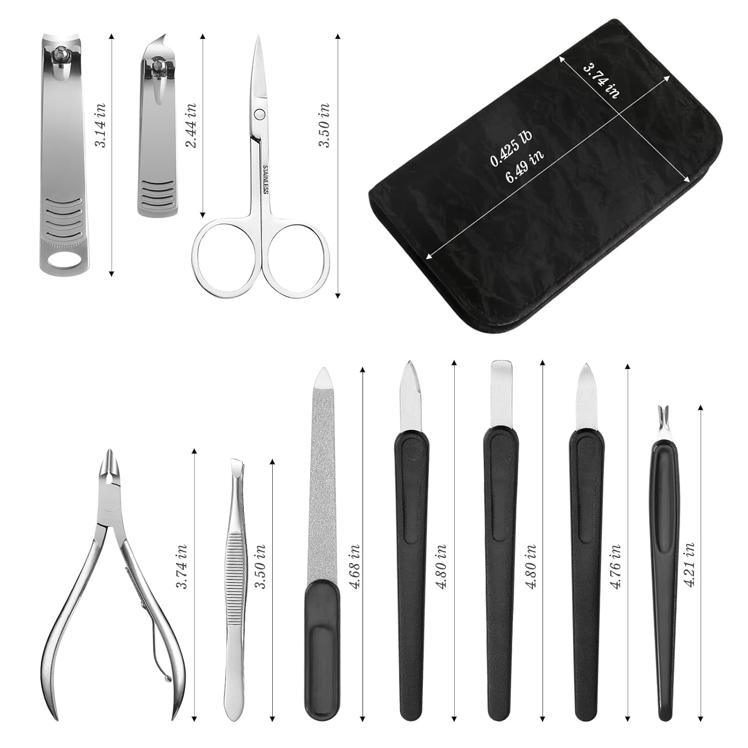 Manicure Pedicure Set, Nail Clipper Set 10-Piece Set Professional Manicure Kit Nail Kit with Portable Black Leather Case Gift for Men Boyfriend Parent
