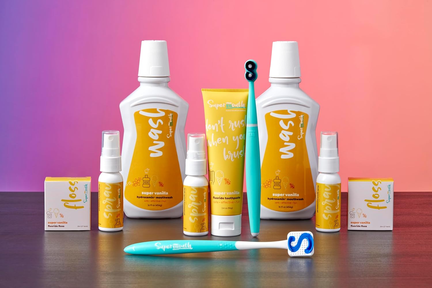 - Clean, Expertly Developed, & Sustainably Packaged: Rely on a toothpaste free from artificial flavors, colors, sweeteners, SLS, titanium dioxide, and other potentially harsh additives. Dentist-developed and made in the USA with globally sourced premium ingredients, SuperMouth is vegan, gluten-free, and packaged with sustainable materials—so you can protect your teeth, gums, and the planet every time you brush.