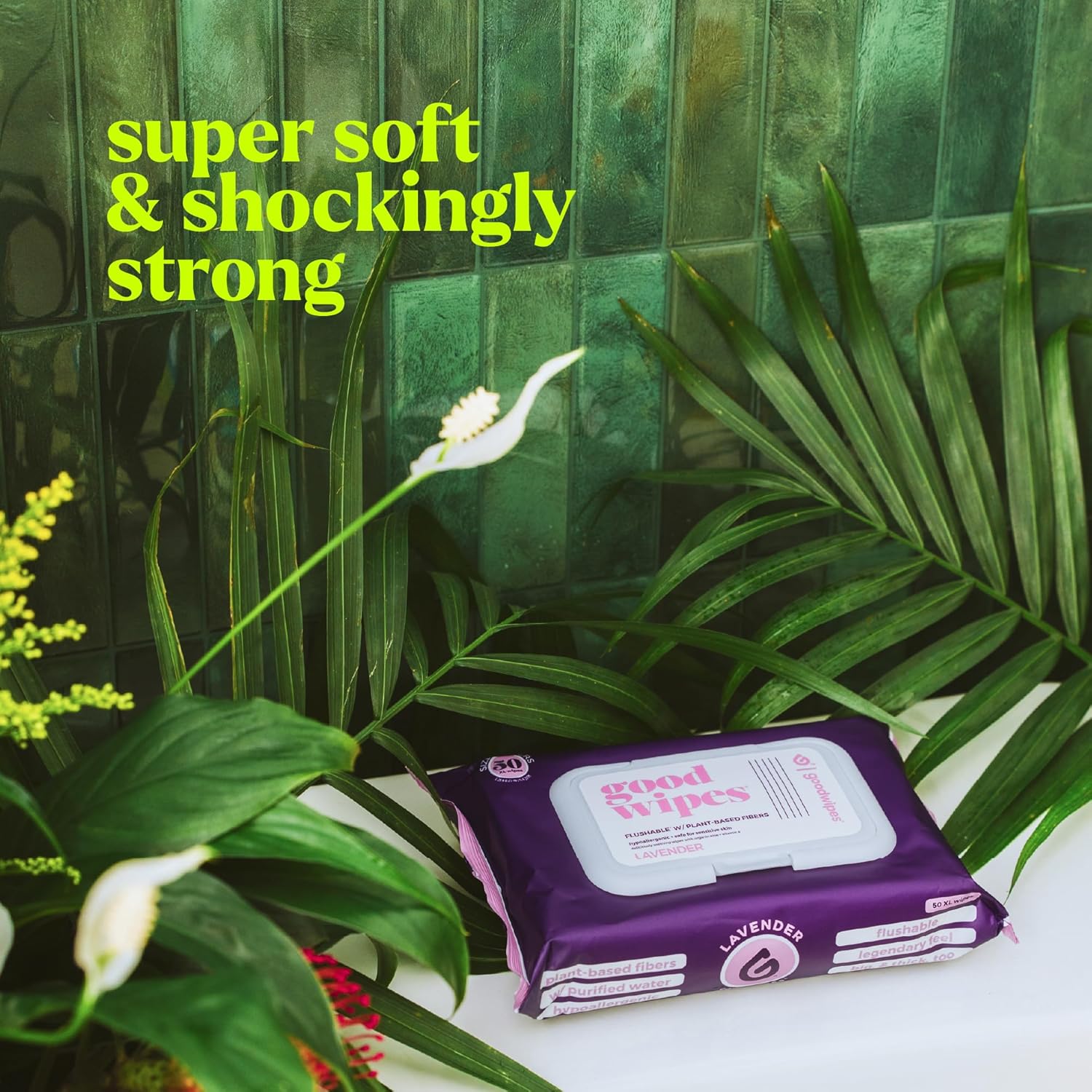 goodwipes Flushable Butt Wipes - Vitamin E & Aloe - Sewer & Septic Safe - Extra Large Adult Wet Wipes For Women & Men - Bathroom Essentials - Lavender, 418 Count (8 Packs + 1 Travel)