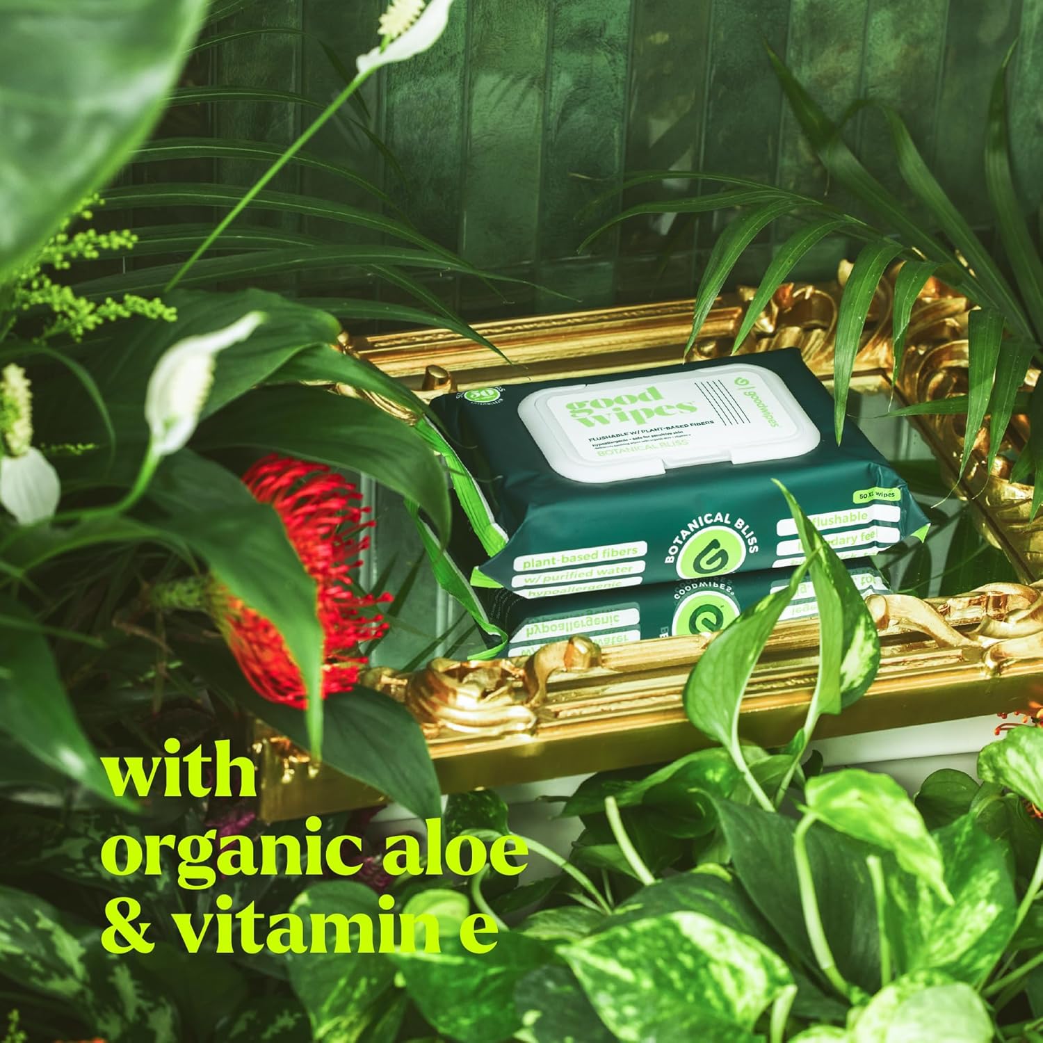 goodwipes Flushable Butt Wipes - Vitamin E & Aloe - Sewer & Septic Safe - Extra Large Adult Wet Wipes For Women & Men - Bathroom Essentials - Botanical Bliss, 418 Count (8 Packs + 1 Travel)