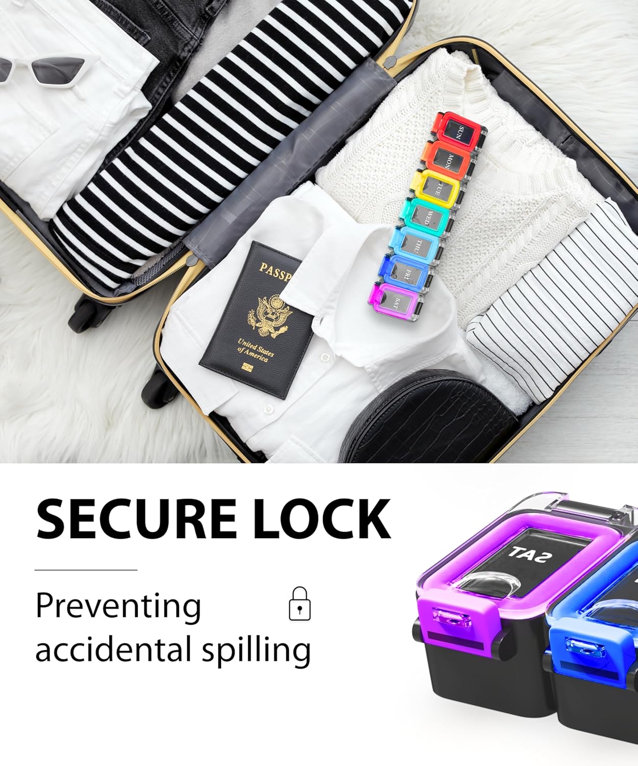 - Upgraded locking system – the pill box 7 day features reinforced individual latches that stay tightly closed to prevent spills. Designed for long-term durability without snapping or wearing out