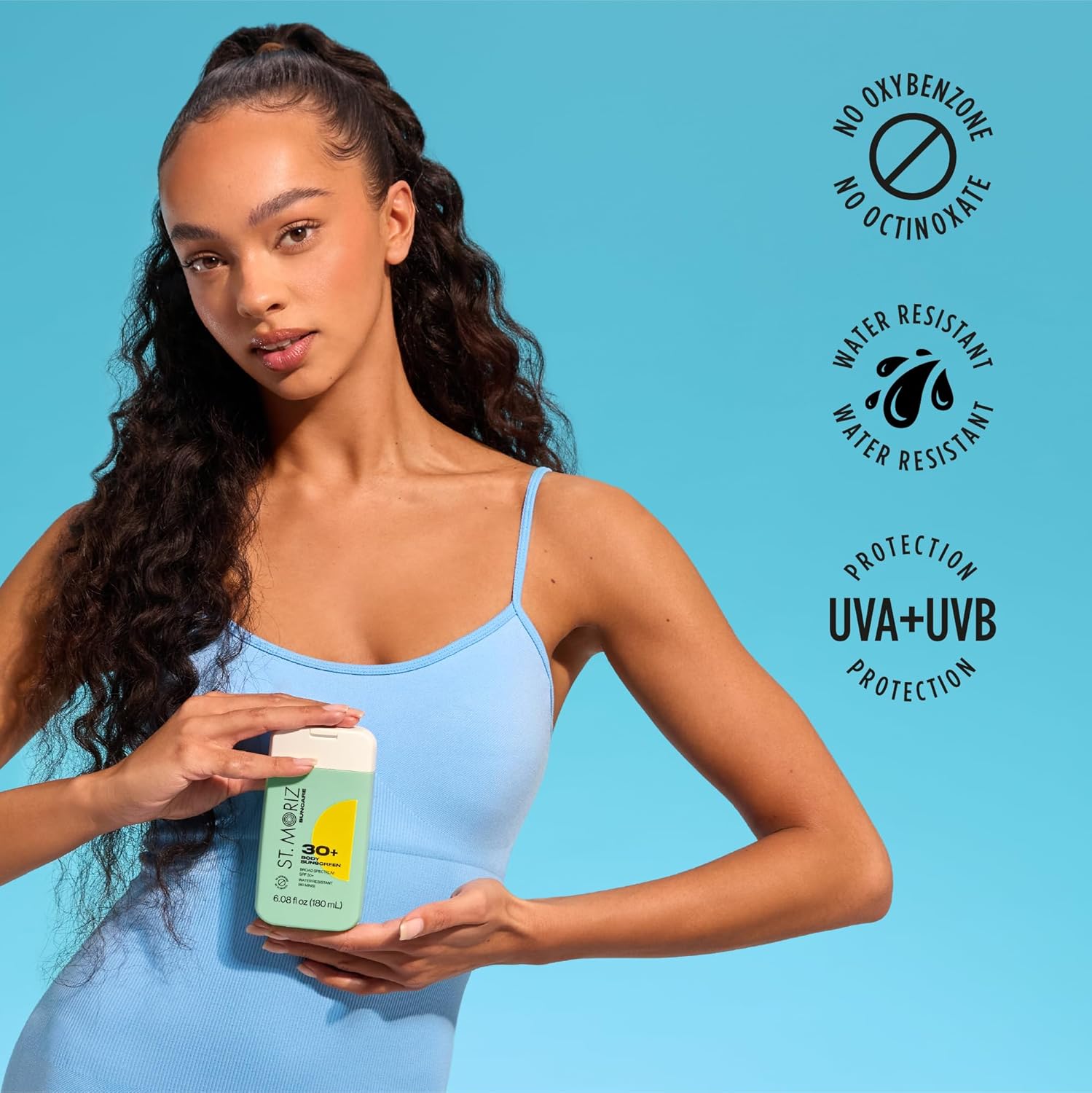 - SPF 30+ PROTECTION: St. Moriz Suncare SPF 30+ Body Sunscreen is a light-weight, fast-absorbing & non-greasy lotion which provides SPF 30+ UVA & UVB broad spectrum sun protection.