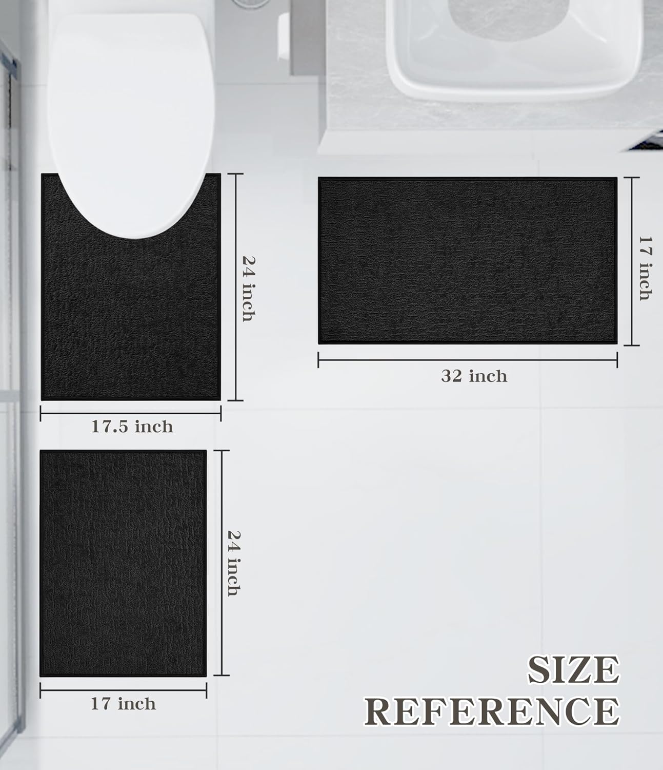chakme Bathroom Rug Sets 3 Piece, Ultra Thin Bath Mat Quick Dry Bath Mat, Absorbent Bath Mat for Bathroom Non Slip Machine Washable, (Black)
