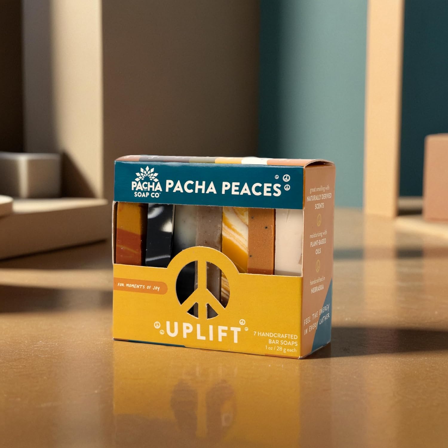 Pacha Soap Co. Bar Soap, Pacha Peaces, Uplift, 2-Pack (4 oz ea) - Premium, Handcrafted, Hydrating, Natural Face Wash, Hand Cleanser, Body Wash, Soothing Essential Oils