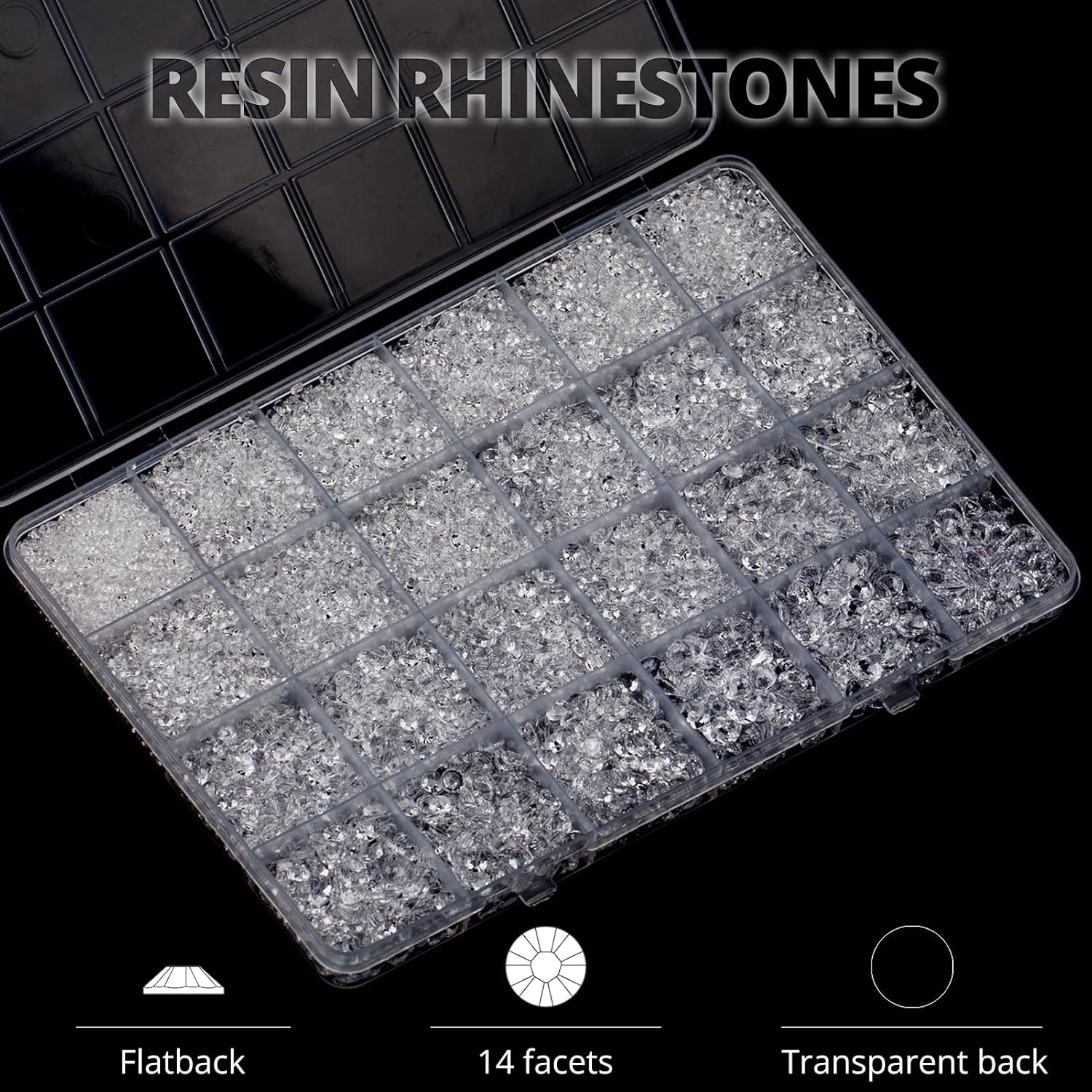 30000Pcs Resin Rhinestones for Crafting Bedazzling, Transparent See-through Clear Flatback Gems Crystal for Crafts Clothing Clothes Shoes Fabric Tumbler, Flat Back Jewels Various Sizes with b7000 Glue