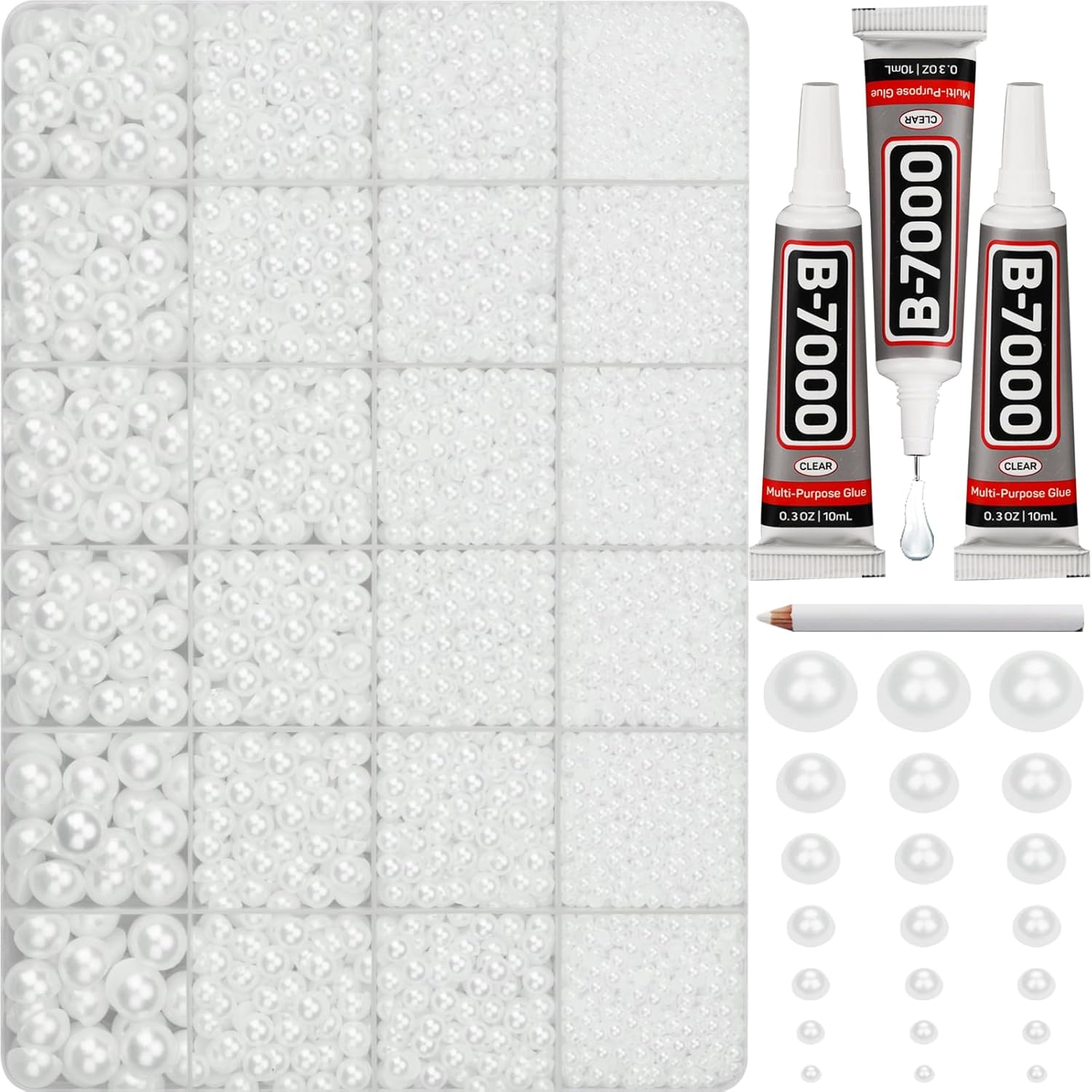 16000Pcs Flatback Pearls for Crafting, White Flat Back Assorted Sizes 2/3/4/5/6/8/10mm Half Pearl Beads Bedazzling for Crafts Clothing Tumbler Shoes Wedding Gown Nails with B7000 Jewelry Making Glue