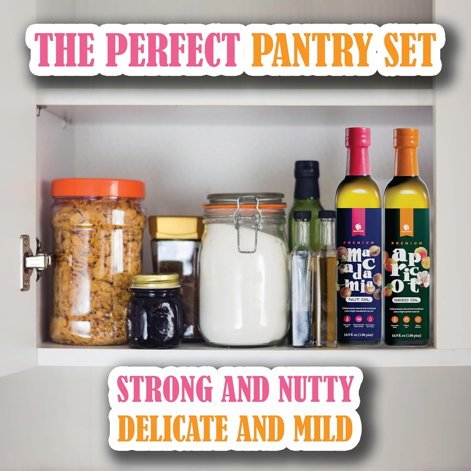 Gourmanity Macadamia Nut Oil and Apricot Seed Oil Bundle, A Healthier Oil Alternative, Cholesterol Free, Keto And Paleo Friendly, Ideal for Frying, Roasting and Drizzling, 16.9 fl oz Bottle