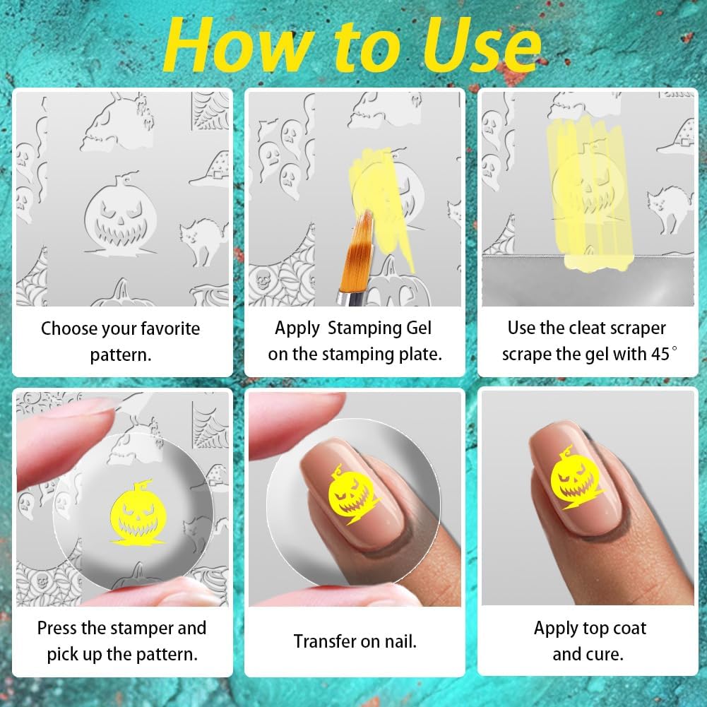 - Package Information: A total of 3 templates, 1 nail stamp and scraper, Easter, Christmas, Halloween, Thanksgiving, St. Patrick's Day patterns, randomly collocation, leading the nail fashion, the world at your fingertips jump