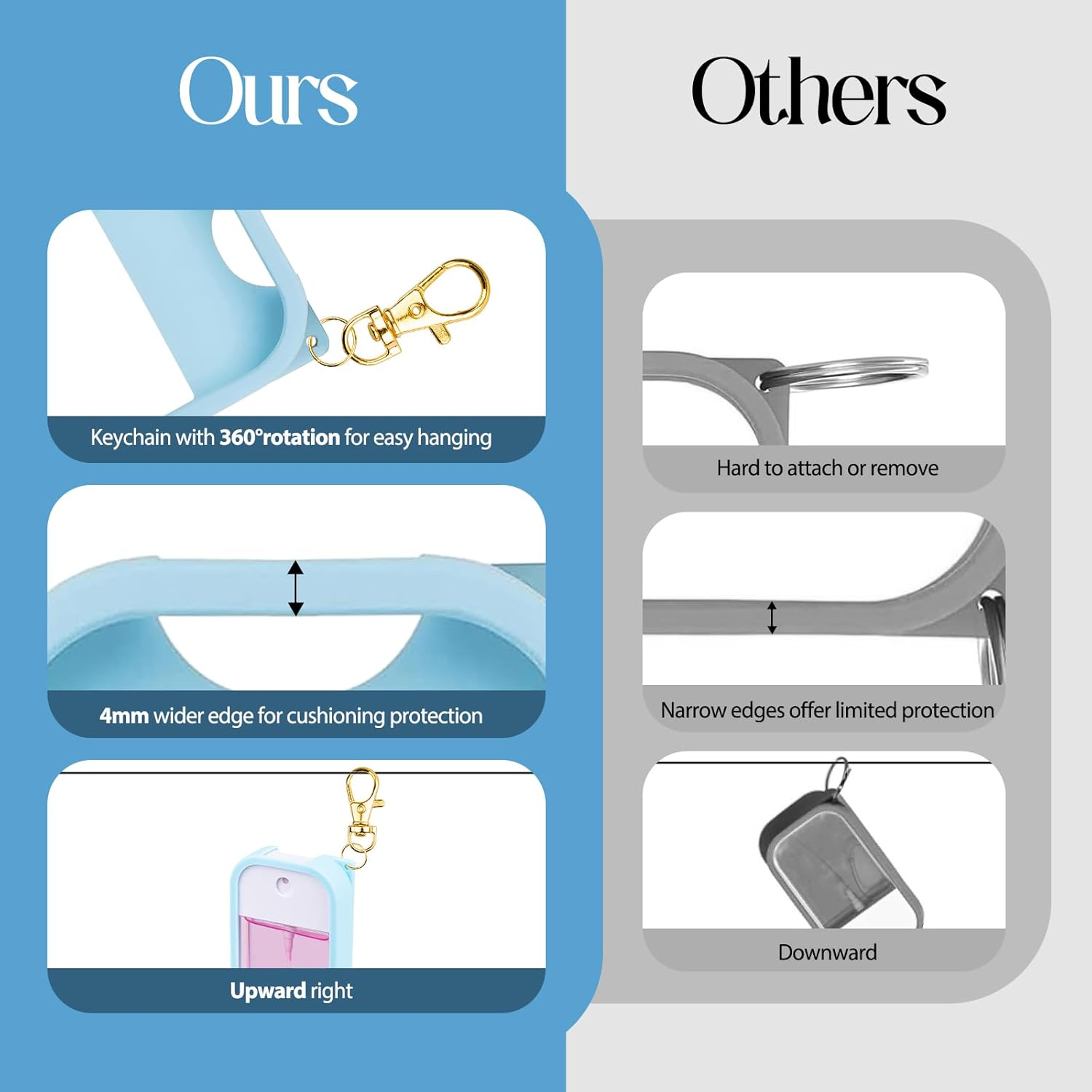 • 360° Rotating Keychain for Convenience: Equipped with a keychain featuring 360° rotation, the case can be easily attached to bags, keys, or belts for effortless portability, keeping your hand sanitizer always within reach.