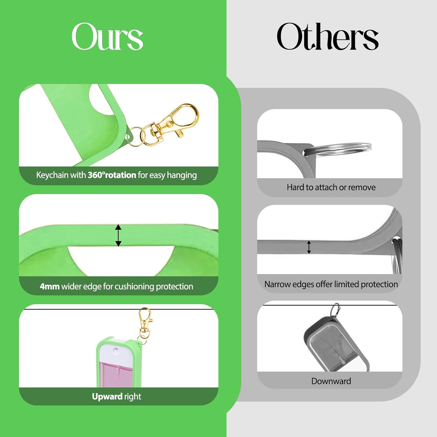- 360° Rotating Keychain for Convenience: Equipped with a keychain featuring 360° rotation, the case can be easily attached to bags, keys, or belts for effortless portability, keeping your hand sanitizer always within reach.