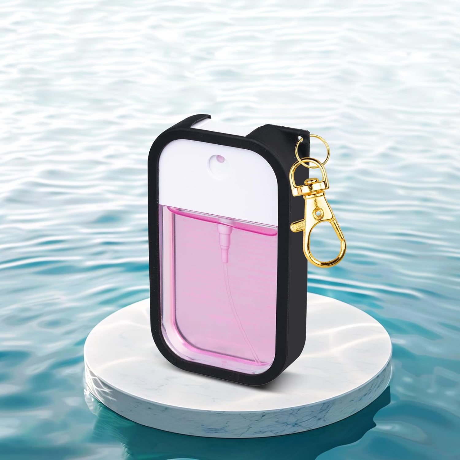 - 360° Rotating Keychain for Convenience: Equipped with a keychain featuring 360° rotation, the case can be easily attached to bags, keys, or belts for effortless portability, keeping your hand sanitizer always within reach.