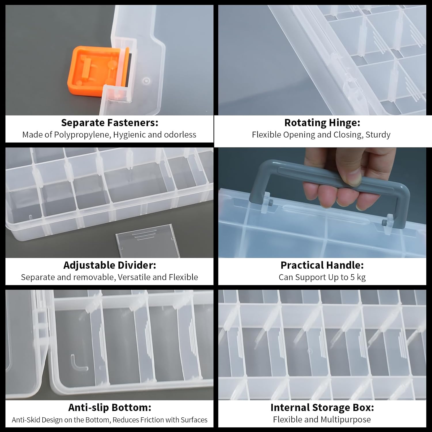 - Thoughtful Design: The 48 grids plastic toy storage case comes with a snap button closure, ensuring it securely shuts, and is easy to open; It also features a sturdy and comfortable carrying handle, ideal for easy transport and storage, whether traveling or organizing at home